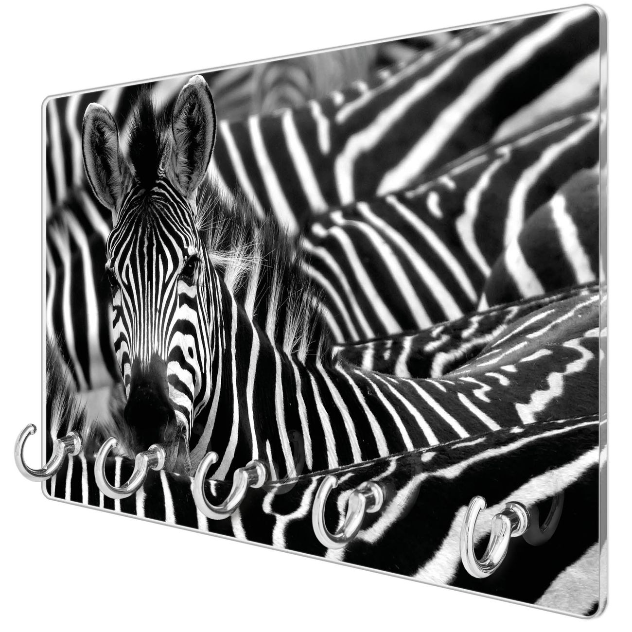 Glas Schlüsselbrett mit 5 Haken Zebras