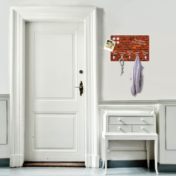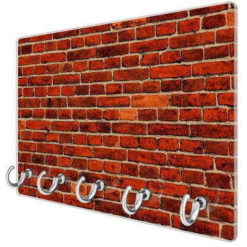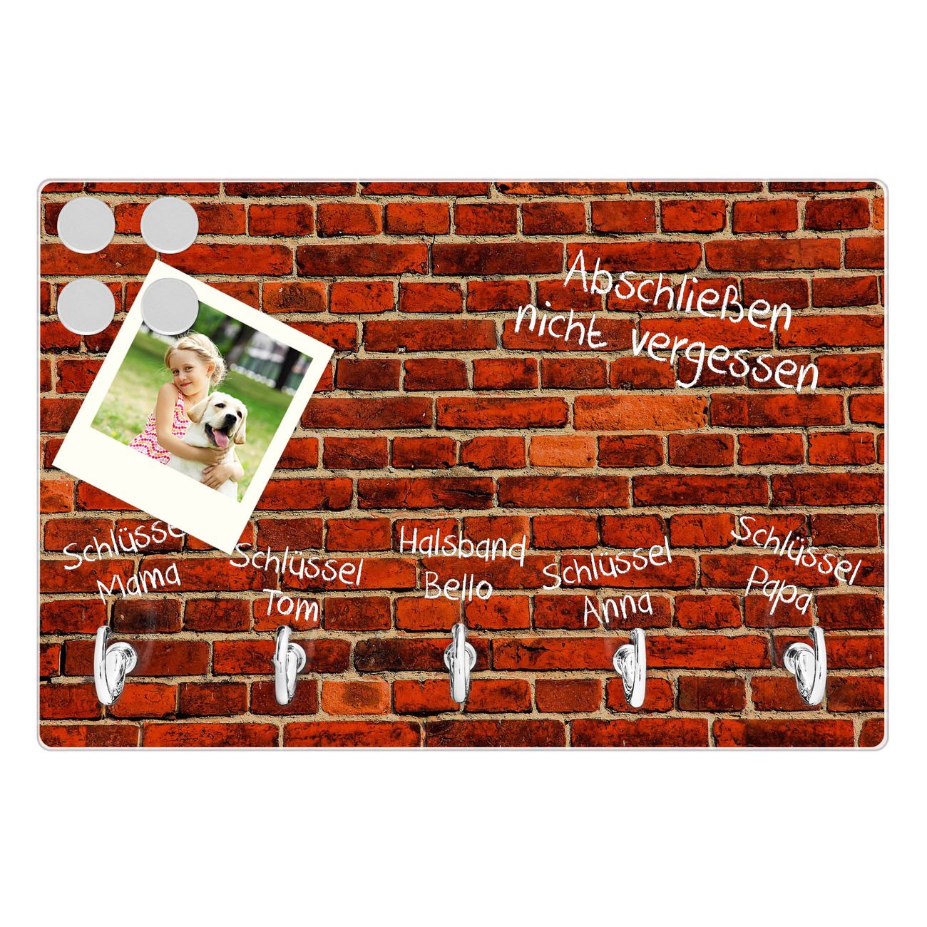 Glas Schlüsselbrett mit 5 Haken Ziegelwand