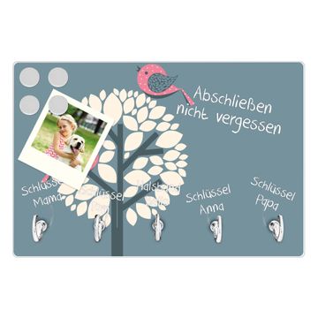 FUNKTION: Mit dem banjado Schlüsselbrett Zwei Rosa Vögel hat Ihre Suche nach dem Schlüsselbund endlich ein Ende! Auf gesamt 5 Haken finden auch die größten Schlüssel ihren Platz. Durch den farbenfrohen Motivdruck ist das Schlüsselboard ein Blickfang in jeder Wohnung. DESIGN: Die Schlüsselleiste mit Motiv Zwei Rosa Vögel hat ein sehr ansprechendes und ausgefallenes Design. Das Glasboard besteht aus einer gehärteten Glasscheibe mit dem Motiv Ihrer Wahl. Ihre neue Schlüsselaufbewahrung ist funktionell und ein optisches Highlight. DETAILS: Das Schlüsselbrett ist 30 x 20 x 4,5 CM (BxHxT). Das ganze Board besteht aus gehärtetem Sicherheitsglas, die Haken zur Selbstmontage präsentieren sich in Edelstahl-Optik. Für einen sicheren Halt erfolgt die Aufhängung an 2 vorgefertigten Haltern an der Rückseite. Das Montagematerial fügen wir bei. NUTZEN: Hier findet alles seinen Platz: Schlüsselbunde, Geschirrtücher, Hundeleinen oder Kinderjacken. Das Glas kann mit Kreidestiften bzw. Whiteboard-Marker beschrieben werden, mit extrastarken Neodym-Magneten können Sie auch Notizen anheften. BANJADO: Wir sind ein kleines Team aus dem Herzen von Sachsen und fertigen Ihre neue Schlüsselaufbewahrung von Hand an. Sie erhalten Handarbeit und keine preiswerte Importware. Wir hoffen, dass Ihnen unsere Idee zusagt, herzlichst das banjado Team.