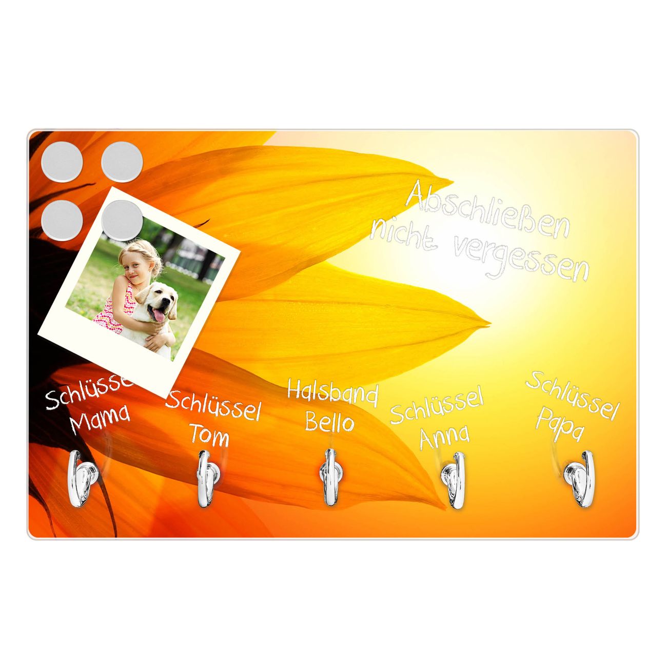 Glas Schlüsselbrett mit 5 Haken Zwei Sonnen