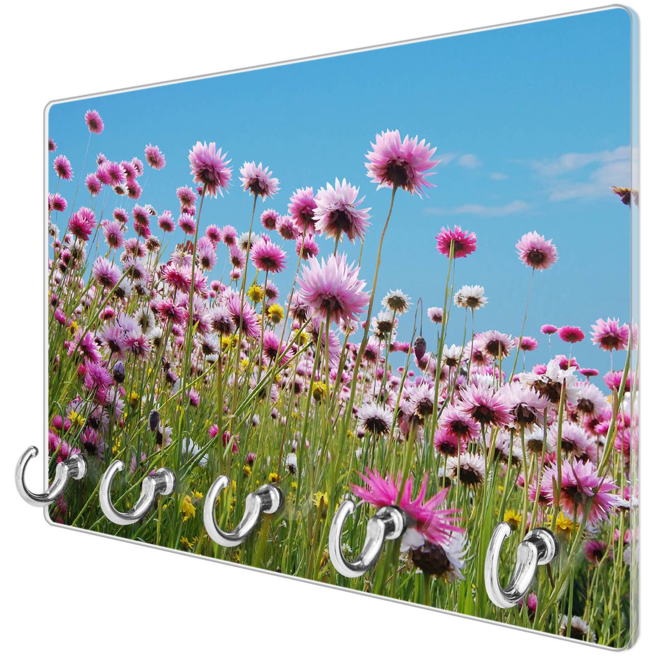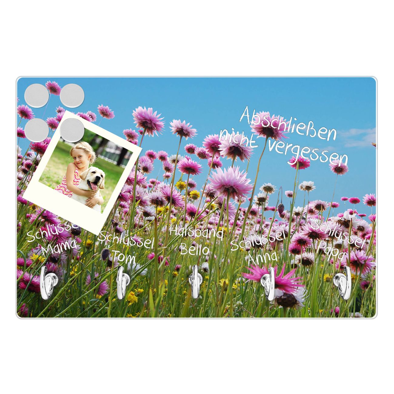 Glas Schlüsselbrett mit 5 Haken Sommerblumen