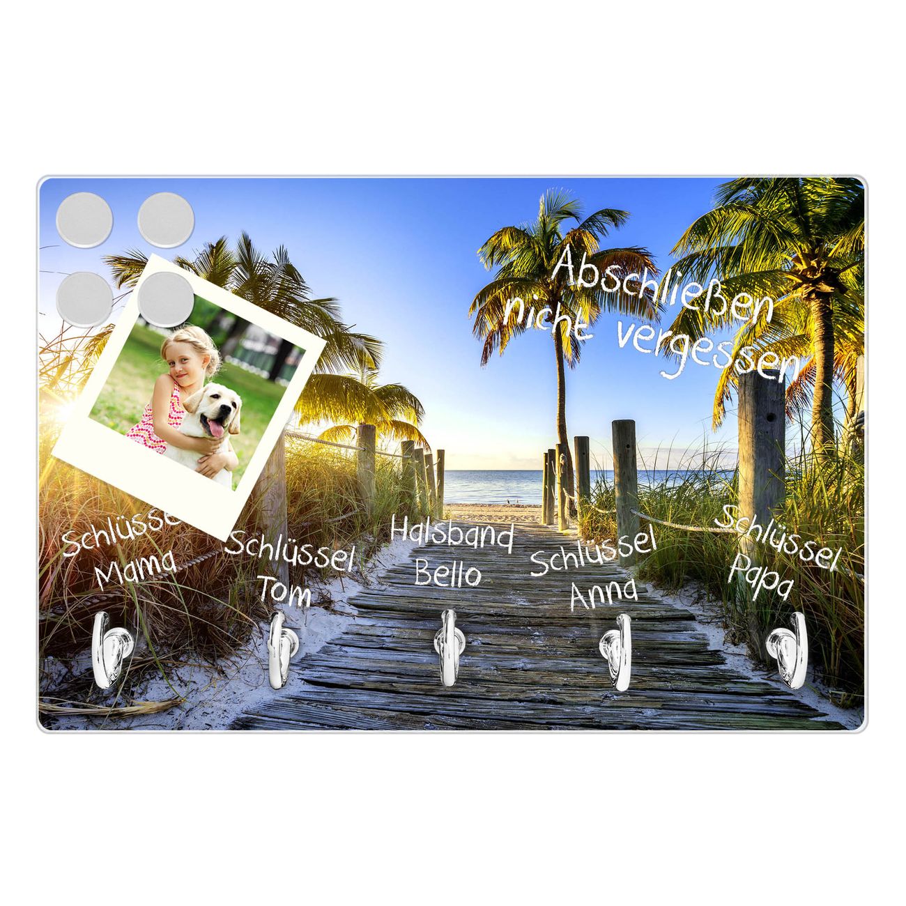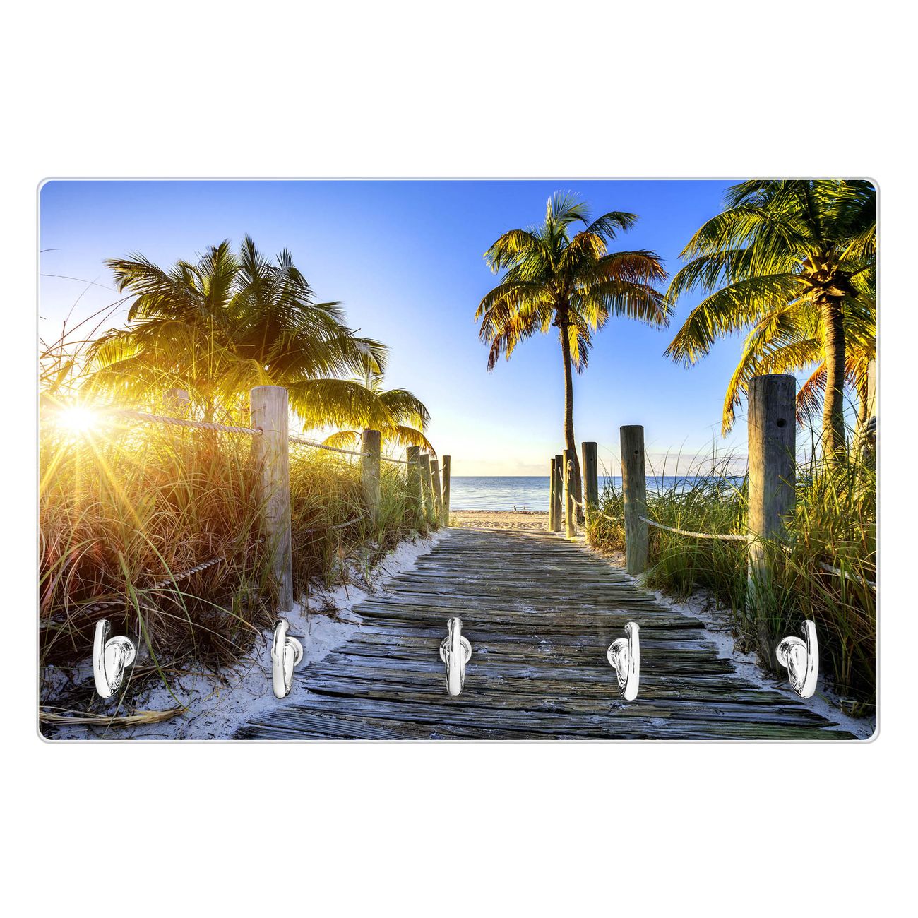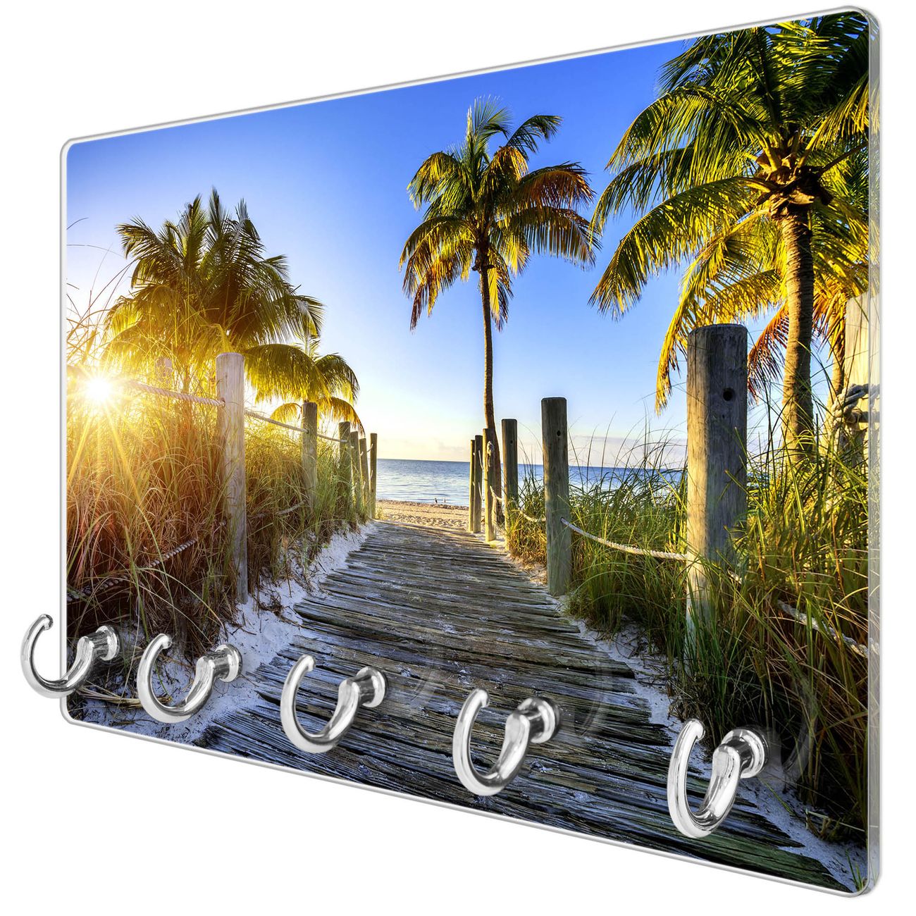 Glas Schlüsselbrett mit 5 Haken Weg zum Strand