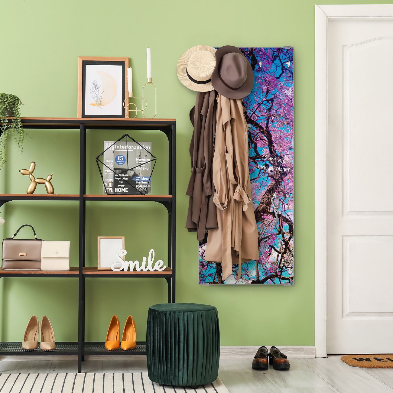 FUNKTION: Die banjado Wandgarderobe mit Motiv Baumkrone 2 ist Ihr täglicher Begleiter. Zuverlässig hängen hier Ihre Jacken und Mäntel griffbereit. Das Echtglas ist Ihr Paneel auch beschreibbar und wieder abwischbar. DESIGN: Sie erhalten eine Garderobenleiste aus elegantem Echtglas mit dem Farbbrillanten Motiv Baumkrone 2 hinterklebt. Das Design ist zeitlos klassisch, ohne dabei auf Funktionalität zu verzichten. Suchen Sie aus einer Vielzahl von Motiven das für Ihre Einrichtung Passende aus. DETAILS: Die Flurgarderobe besteht aus 4mm gehärtetem Sicherheitsglas. Sie ist 50cm breit, 125cm hoch und 6cm tief. Die Garderobenhaken zur Selbstmontage präsentieren sich in Edelstahl-Optik, ebenso die Abstandshalter für die Wandmontage. Ihre neue Garderobe ist sofort einsatzbereit. NUTZEN: Ihre neue Garderobe hält nicht nur zuverlässig Ihre Kleidung, sie ist auch optisch ein Blickfang. Durch das Glas können Sie an der Garderobe mit wasserlöslichen Kreidestiften oder Whiteboard-Markern auch Nachrichten hinterlassen. BANJADO: Wir sind ein kleines kreatives Team aus Sachsen und entwickeln Produkte die Design und Funktionalität verbinden sollen. Viel Freude mit Ihrer neuen Garderobe wünscht das banjado-Team!