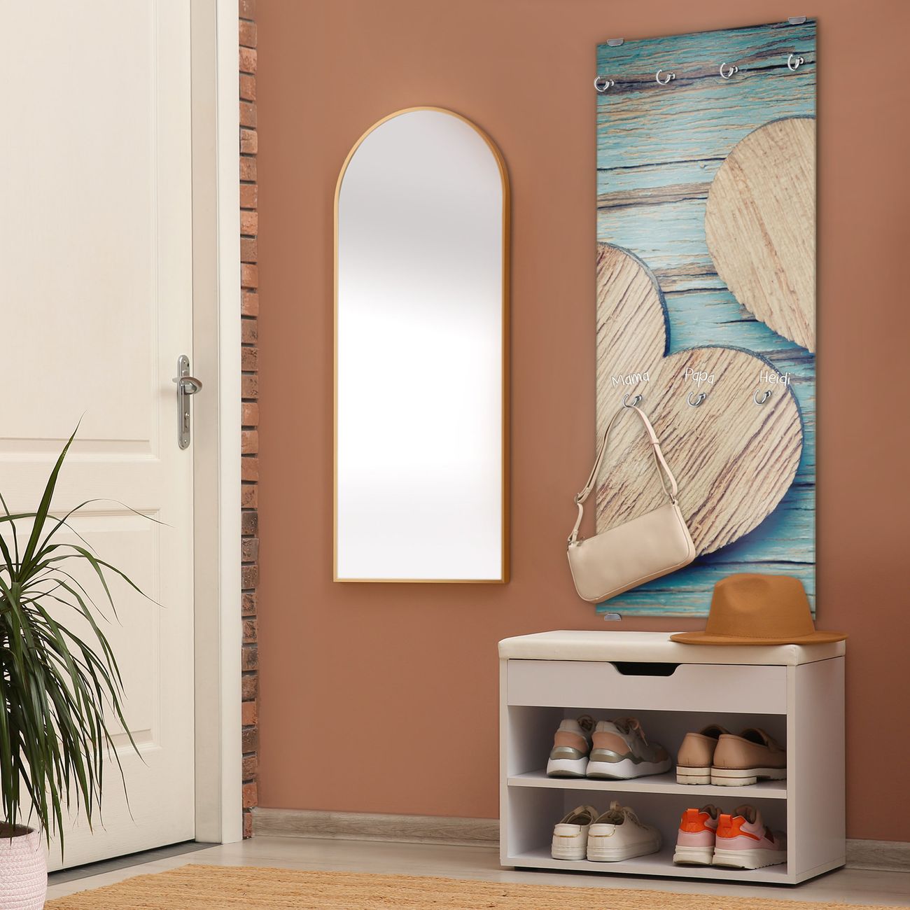 Flurgarderobe Glas 50x125cm Motiv Holz Herzen