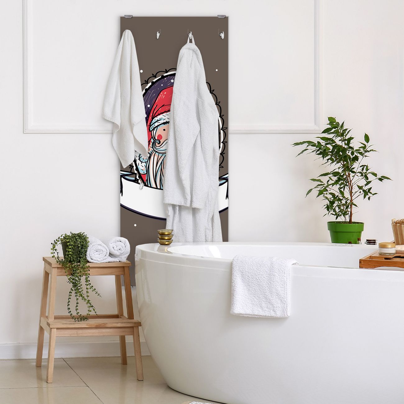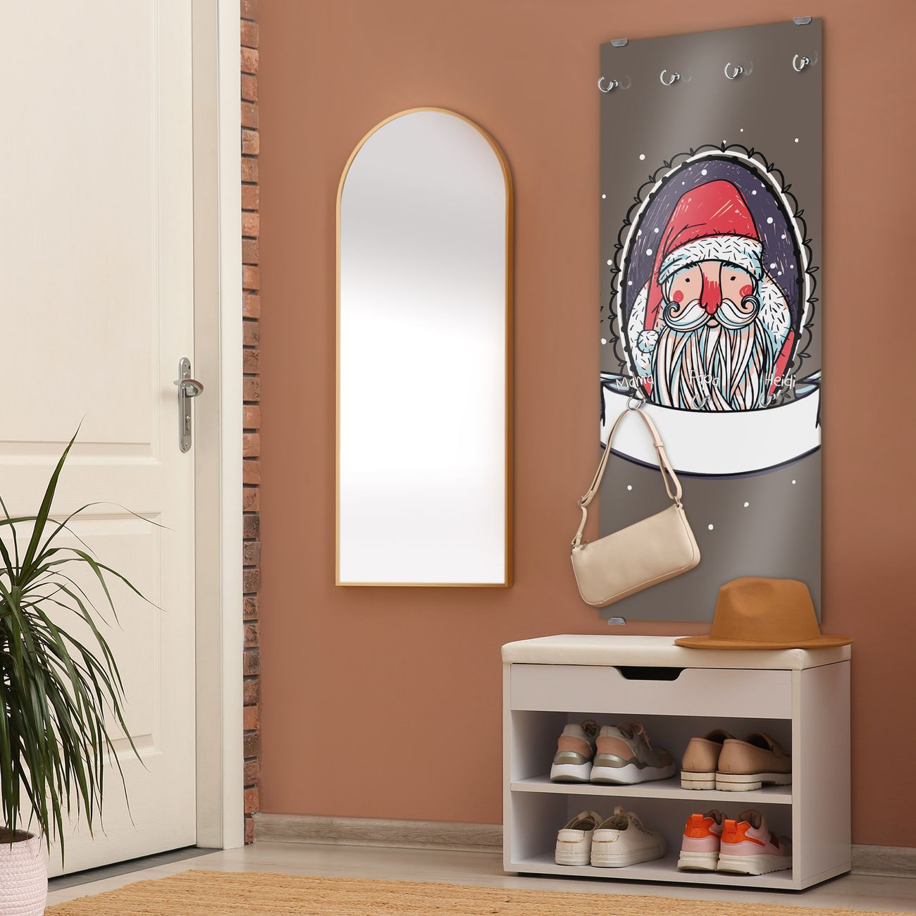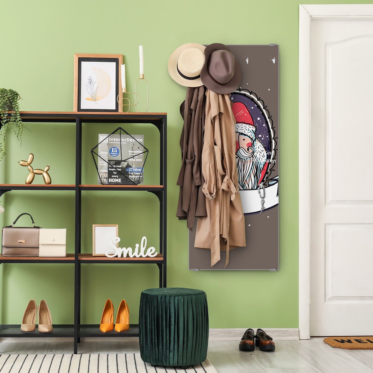 FUNKTION: Die banjado Wandgarderobe mit Motiv Merry XMAS ist Ihr täglicher Begleiter. Zuverlässig hängen hier Ihre Jacken und Mäntel griffbereit. Das Echtglas ist Ihr Paneel auch beschreibbar und wieder abwischbar. DESIGN: Sie erhalten eine Garderobenleiste aus elegantem Echtglas mit dem Farbbrillanten Motiv Merry XMAS hinterklebt. Das Design ist zeitlos klassisch, ohne dabei auf Funktionalität zu verzichten. Suchen Sie aus einer Vielzahl von Motiven das für Ihre Einrichtung Passende aus. DETAILS: Die Flurgarderobe besteht aus 4mm gehärtetem Sicherheitsglas. Sie ist 50cm breit, 125cm hoch und 6cm tief. Die Garderobenhaken zur Selbstmontage präsentieren sich in Edelstahl-Optik, ebenso die Abstandshalter für die Wandmontage. Ihre neue Garderobe ist sofort einsatzbereit. NUTZEN: Ihre neue Garderobe hält nicht nur zuverlässig Ihre Kleidung, sie ist auch optisch ein Blickfang. Durch das Glas können Sie an der Garderobe mit wasserlöslichen Kreidestiften oder Whiteboard-Markern auch Nachrichten hinterlassen. BANJADO: Wir sind ein kleines kreatives Team aus Sachsen und entwickeln Produkte die Design und Funktionalität verbinden sollen. Viel Freude mit Ihrer neuen Garderobe wünscht das banjado-Team!