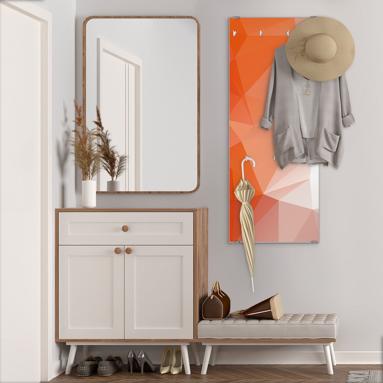 Flurgarderobe Glas 50x125cm Motiv Orange Polygon