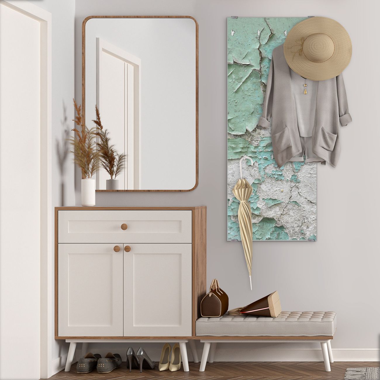 Flurgarderobe Glas 50x125cm Motiv Patina Mint