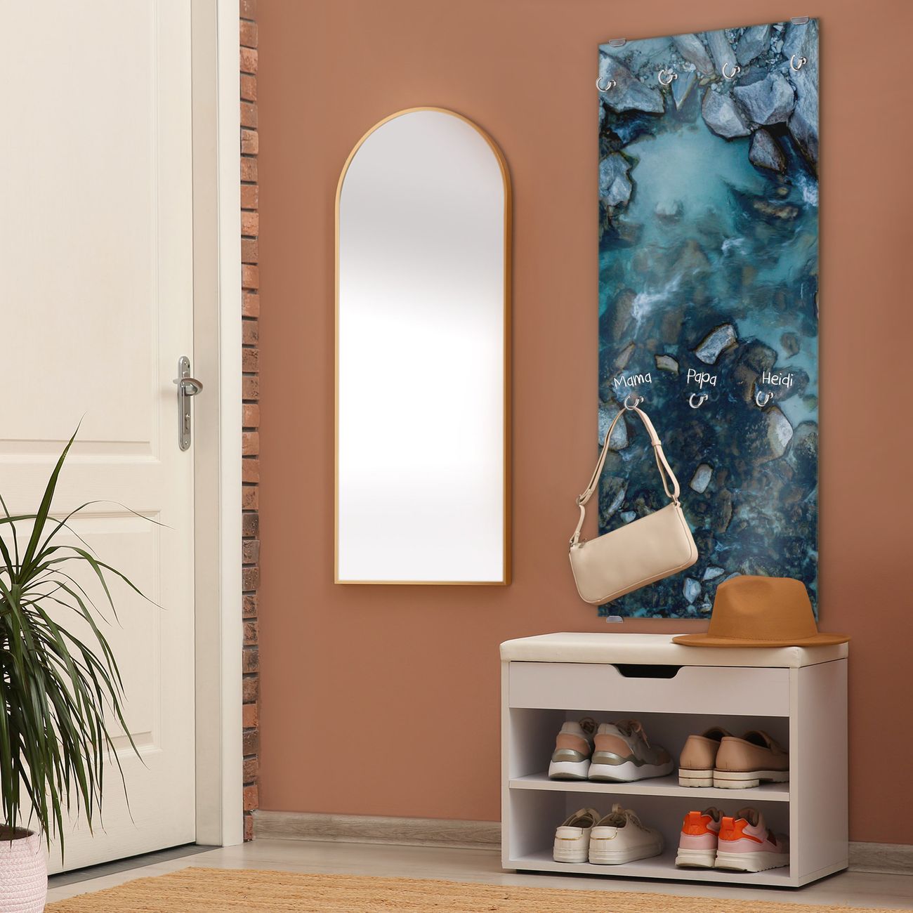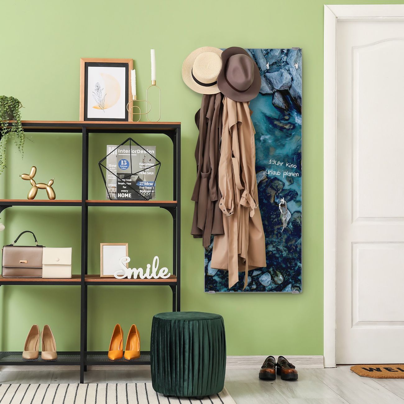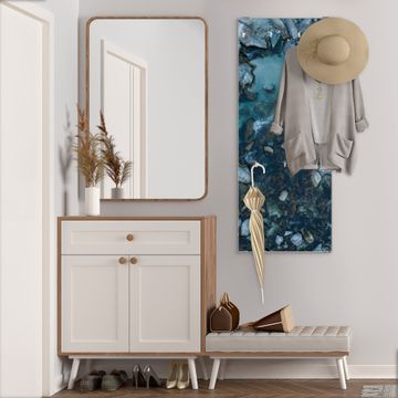 FUNKTION: Die banjado Wandgarderobe mit Motiv Steinbucht 2 ist Ihr täglicher Begleiter. Zuverlässig hängen hier Ihre Jacken und Mäntel griffbereit. Das Echtglas ist Ihr Paneel auch beschreibbar und wieder abwischbar. DESIGN: Sie erhalten eine Garderobenleiste aus elegantem Echtglas mit dem Farbbrillanten Motiv Steinbucht 2 hinterklebt. Das Design ist zeitlos klassisch, ohne dabei auf Funktionalität zu verzichten. Suchen Sie aus einer Vielzahl von Motiven das für Ihre Einrichtung Passende aus. DETAILS: Die Flurgarderobe besteht aus 4mm gehärtetem Sicherheitsglas. Sie ist 50cm breit, 125cm hoch und 6cm tief. Die Garderobenhaken zur Selbstmontage präsentieren sich in Edelstahl-Optik, ebenso die Abstandshalter für die Wandmontage. Ihre neue Garderobe ist sofort einsatzbereit. NUTZEN: Ihre neue Garderobe hält nicht nur zuverlässig Ihre Kleidung, sie ist auch optisch ein Blickfang. Durch das Glas können Sie an der Garderobe mit wasserlöslichen Kreidestiften oder Whiteboard-Markern auch Nachrichten hinterlassen. BANJADO: Wir sind ein kleines kreatives Team aus Sachsen und entwickeln Produkte die Design und Funktionalität verbinden sollen. Viel Freude mit Ihrer neuen Garderobe wünscht das banjado-Team!