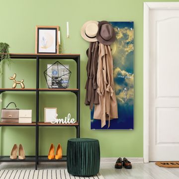 FUNKTION: Die banjado Wandgarderobe mit Motiv Vollmond 2 ist Ihr täglicher Begleiter. Zuverlässig hängen hier Ihre Jacken und Mäntel griffbereit. Das Echtglas ist Ihr Paneel auch beschreibbar und wieder abwischbar. DESIGN: Sie erhalten eine Garderobenleiste aus elegantem Echtglas mit dem Farbbrillanten Motiv Vollmond 2 hinterklebt. Das Design ist zeitlos klassisch, ohne dabei auf Funktionalität zu verzichten. Suchen Sie aus einer Vielzahl von Motiven das für Ihre Einrichtung Passende aus. DETAILS: Die Flurgarderobe besteht aus 4mm gehärtetem Sicherheitsglas. Sie ist 50cm breit, 125cm hoch und 6cm tief. Die Garderobenhaken zur Selbstmontage präsentieren sich in Edelstahl-Optik, ebenso die Abstandshalter für die Wandmontage. Ihre neue Garderobe ist sofort einsatzbereit. NUTZEN: Ihre neue Garderobe hält nicht nur zuverlässig Ihre Kleidung, sie ist auch optisch ein Blickfang. Durch das Glas können Sie an der Garderobe mit wasserlöslichen Kreidestiften oder Whiteboard-Markern auch Nachrichten hinterlassen. BANJADO: Wir sind ein kleines kreatives Team aus Sachsen und entwickeln Produkte die Design und Funktionalität verbinden sollen. Viel Freude mit Ihrer neuen Garderobe wünscht das banjado-Team!