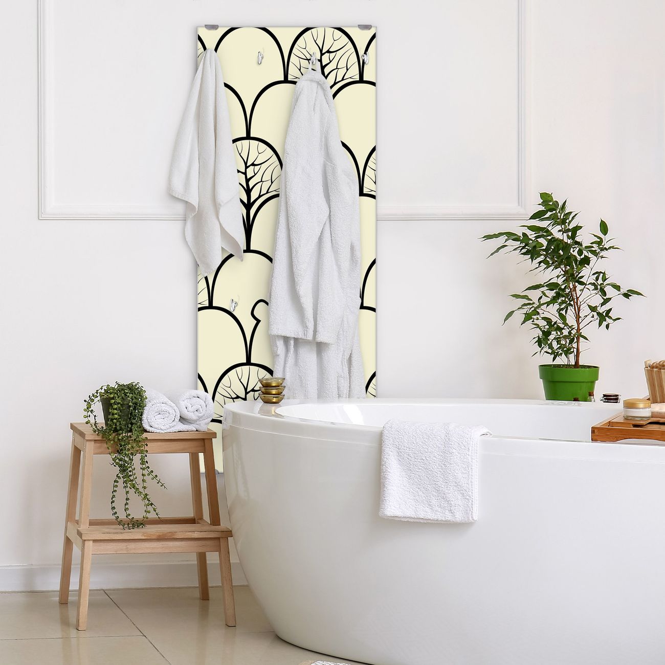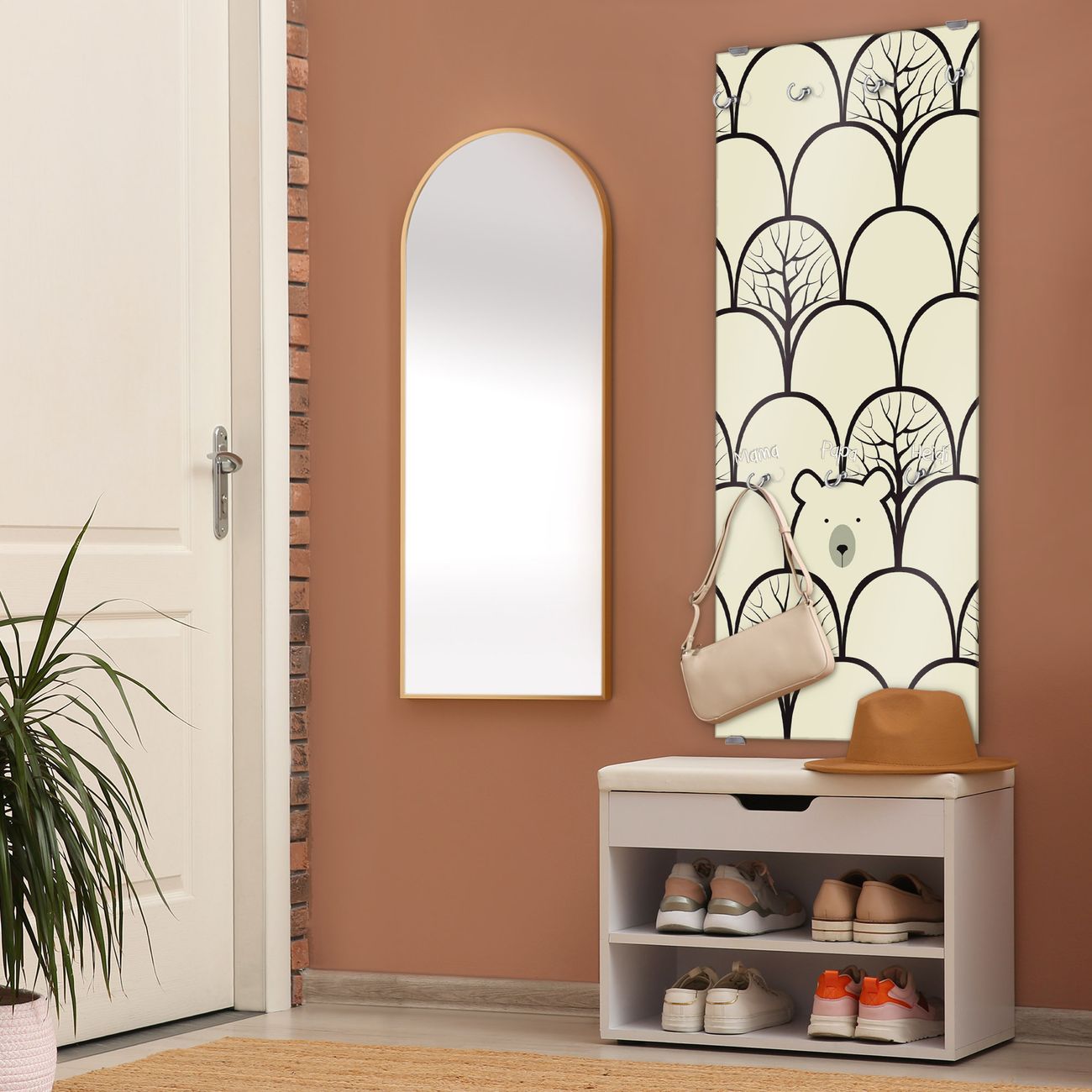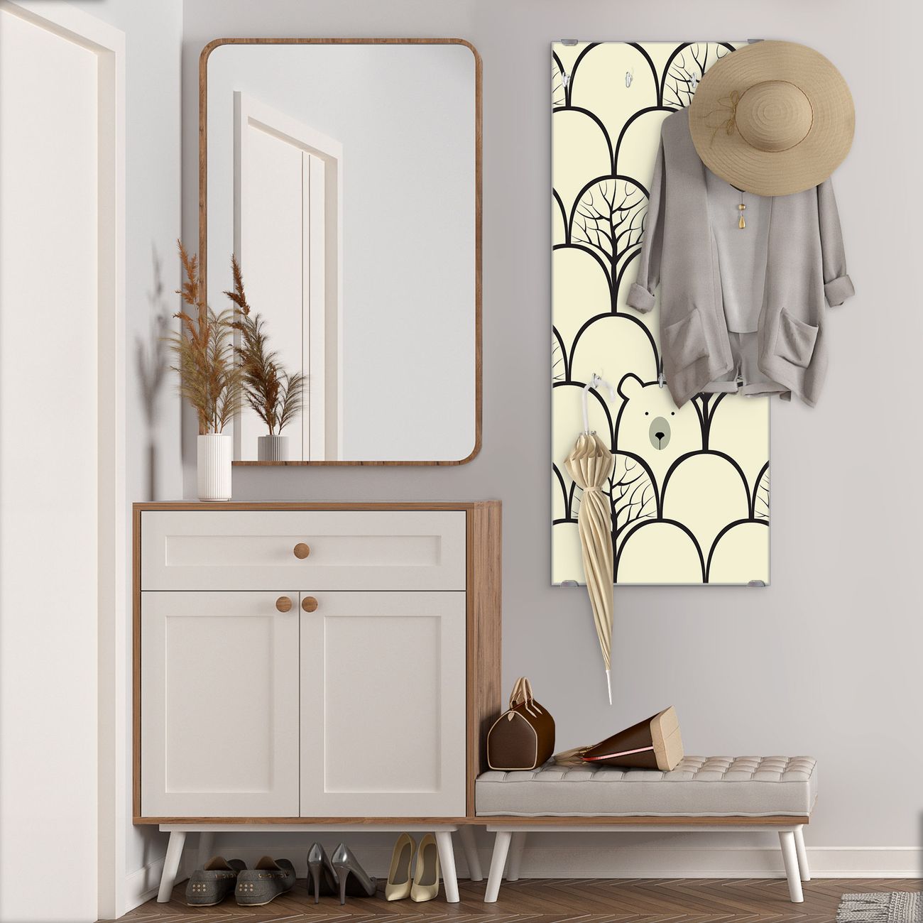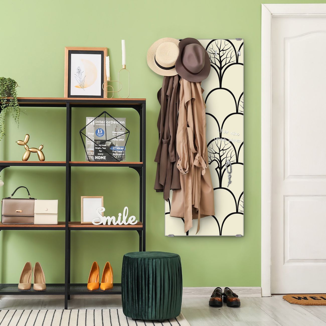 FUNKTION: Die banjado Wandgarderobe mit Motiv Waldbeeren ist Ihr täglicher Begleiter. Zuverlässig hängen hier Ihre Jacken und Mäntel griffbereit. Das Echtglas ist Ihr Paneel auch beschreibbar und wieder abwischbar. DESIGN: Sie erhalten eine Garderobenleiste aus elegantem Echtglas mit dem Farbbrillanten Motiv Waldbeeren hinterklebt. Das Design ist zeitlos klassisch, ohne dabei auf Funktionalität zu verzichten. Suchen Sie aus einer Vielzahl von Motiven das für Ihre Einrichtung Passende aus. DETAILS: Die Flurgarderobe besteht aus 4mm gehärtetem Sicherheitsglas. Sie ist 50cm breit, 125cm hoch und 6cm tief. Die Garderobenhaken zur Selbstmontage präsentieren sich in Edelstahl-Optik, ebenso die Abstandshalter für die Wandmontage. Ihre neue Garderobe ist sofort einsatzbereit. NUTZEN: Ihre neue Garderobe hält nicht nur zuverlässig Ihre Kleidung, sie ist auch optisch ein Blickfang. Durch das Glas können Sie an der Garderobe mit wasserlöslichen Kreidestiften oder Whiteboard-Markern auch Nachrichten hinterlassen. BANJADO: Wir sind ein kleines kreatives Team aus Sachsen und entwickeln Produkte die Design und Funktionalität verbinden sollen. Viel Freude mit Ihrer neuen Garderobe wünscht das banjado-Team!