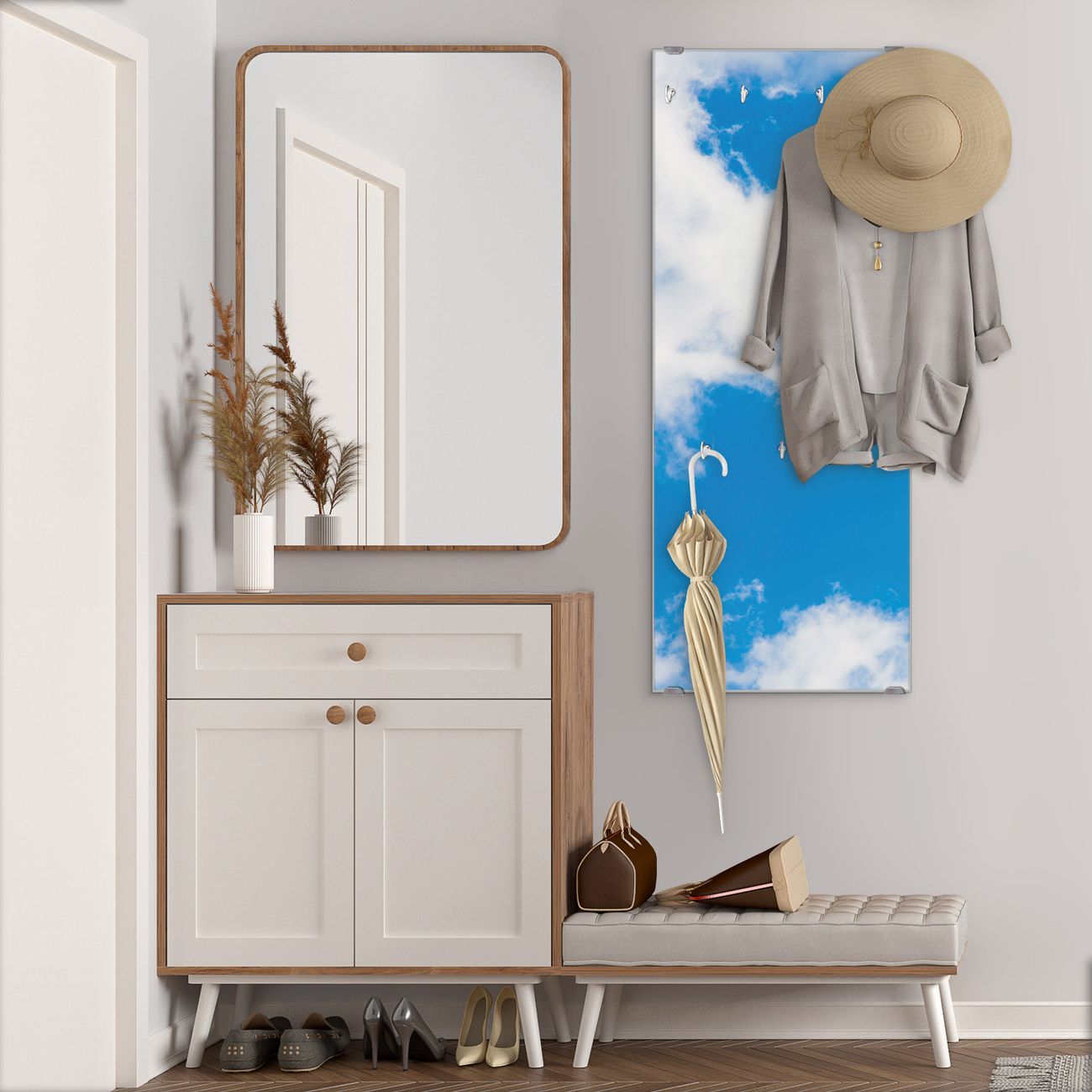Flurgarderobe Glas 50x125cm Motiv Wolken 9