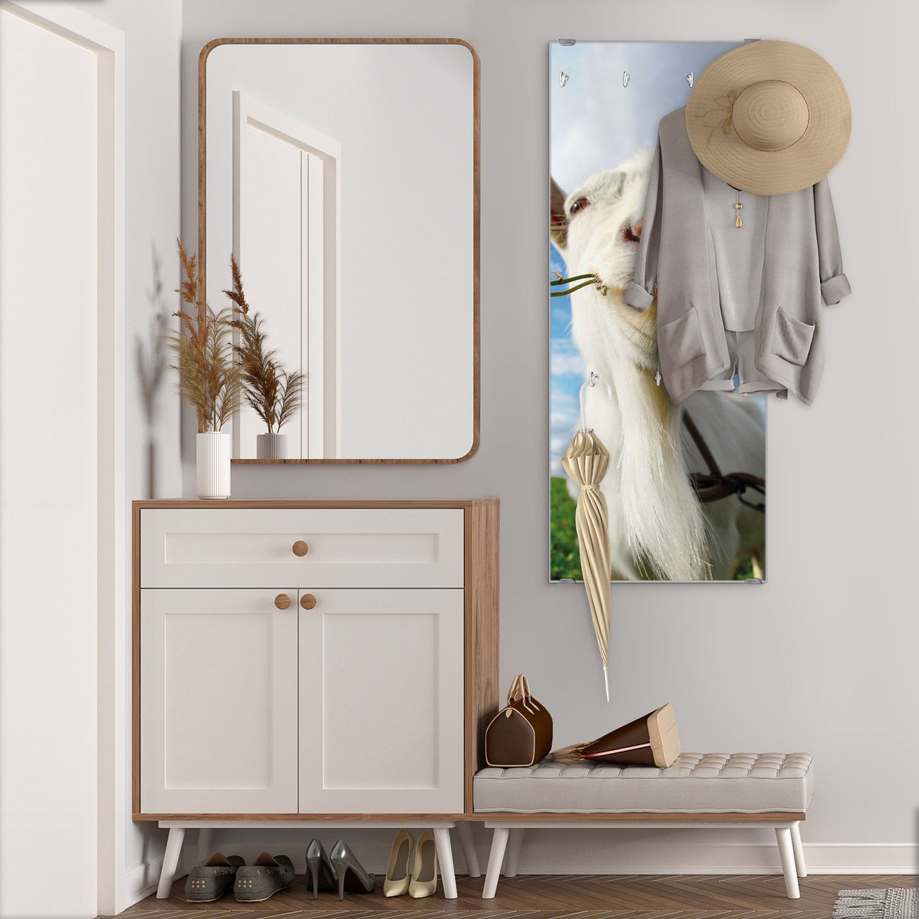 Flurgarderobe Glas 50x125cm Motiv Ziege 2
