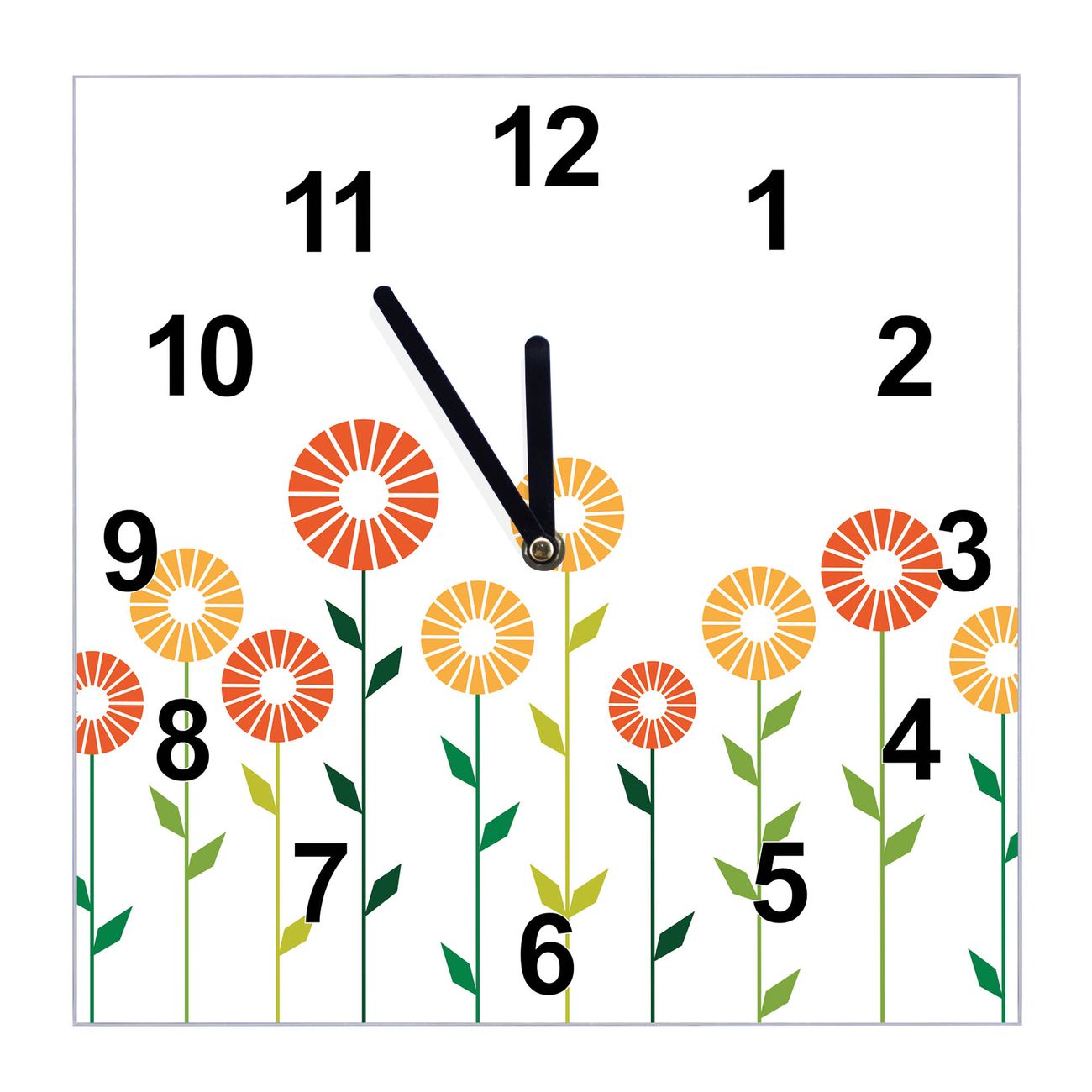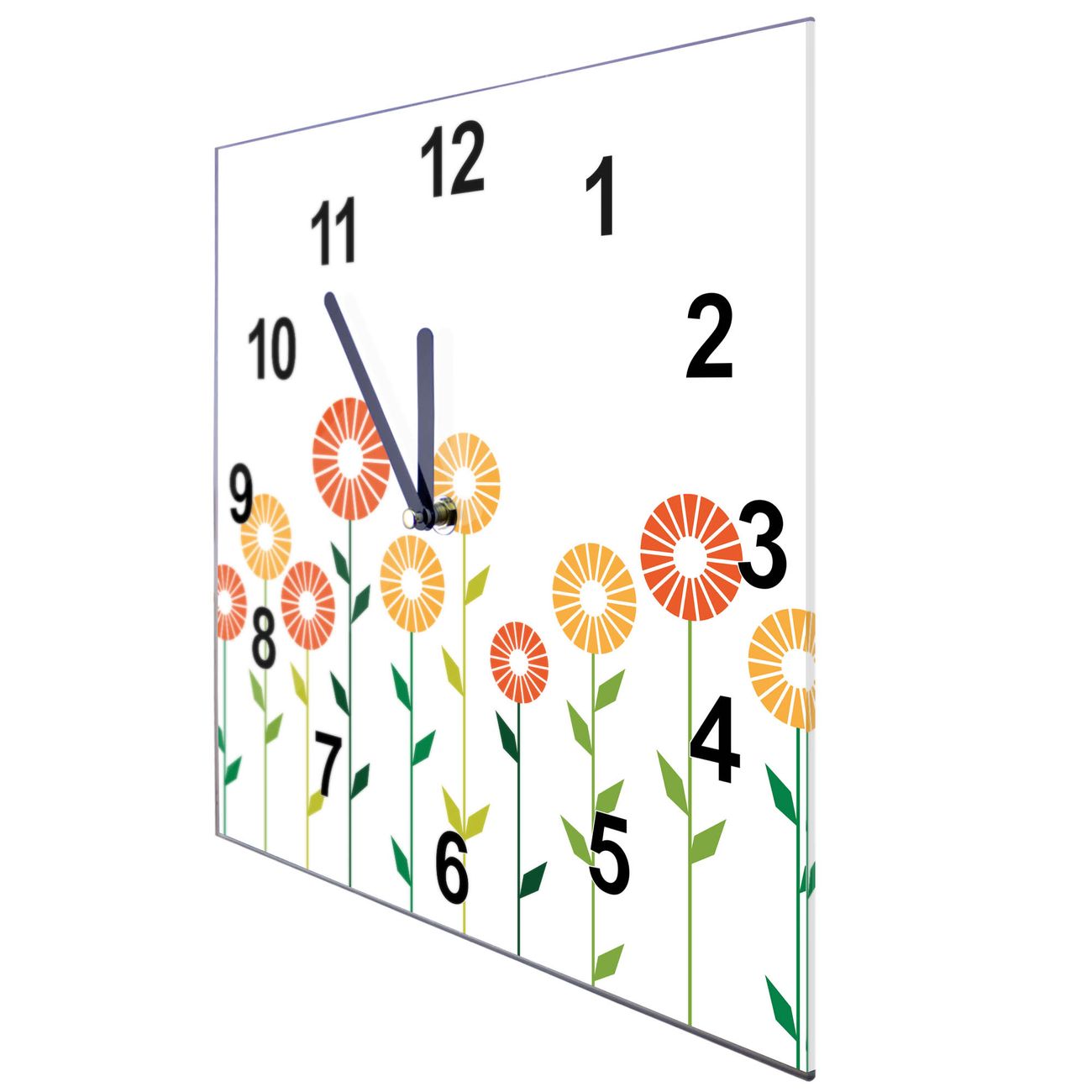 Glasuhr quadratisch Motiv Abstrakte Margeriten