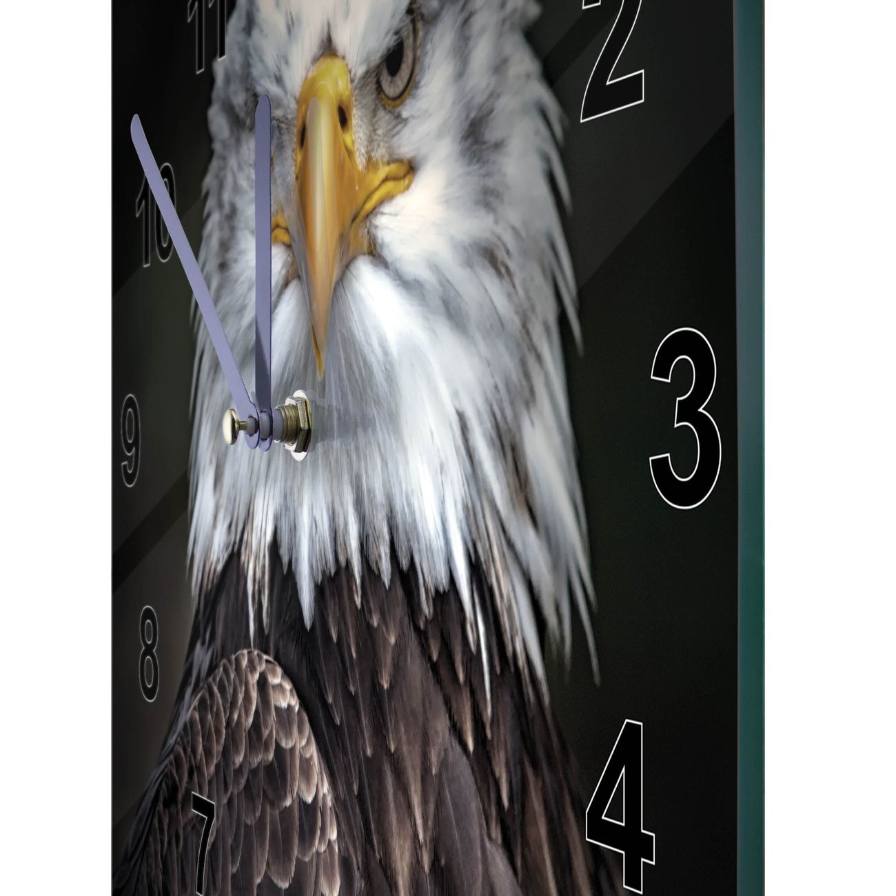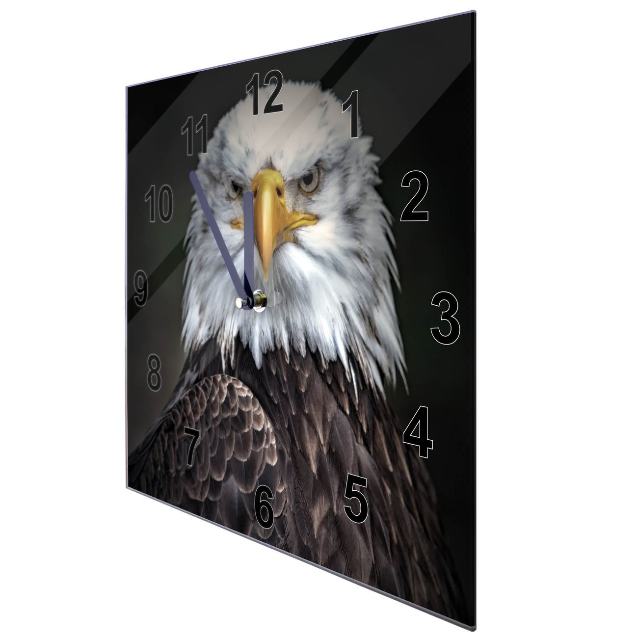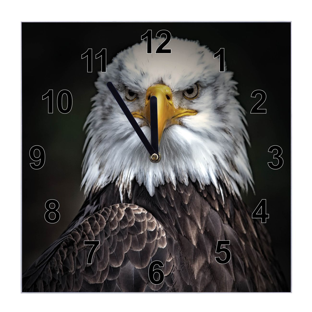 FUNKTION: Mit der banjado Wanduhr aus Glas mit dem Motiv Adler behalten Sie die Zeit immer im Blick, stilsicher und zuverlässig erkennen Sie auf einen Blick was die Stunde geschlagen hat. DESIGN: Die schlichte Form der Uhr sowie das individuelle Motiv passen sich hervorragend jedem Wohnraumkonzept an, egal ob klassisch, nostalgisch oder modern. DETAILS: Die Glasuhr ist quadratisch, 30 x 30cm groß und verfügt über ein geräuscharmes Uhrwerk mit schwarzen Zeigern. Das Motiv Adler befindet sich effektvoll hinter Glas. NUTZEN: Die banjado Glas Wanduhr verbindet Design und Funktion. Perfekt für Küche, Büro, Wohnzimmer oder Kinderzimmer, haben Sie die Zeit im Blick und eine schöne Wanddekoration. BANJADO: Wir fertigen alle Wanduhren auf Bestellung von Hand, erfüllen dabei auch gern Sonderwünsche. Wir wünschen viel Freude bei der Auswahl eines schönen Motivs. Herzlichst, banjado aus Sachsen