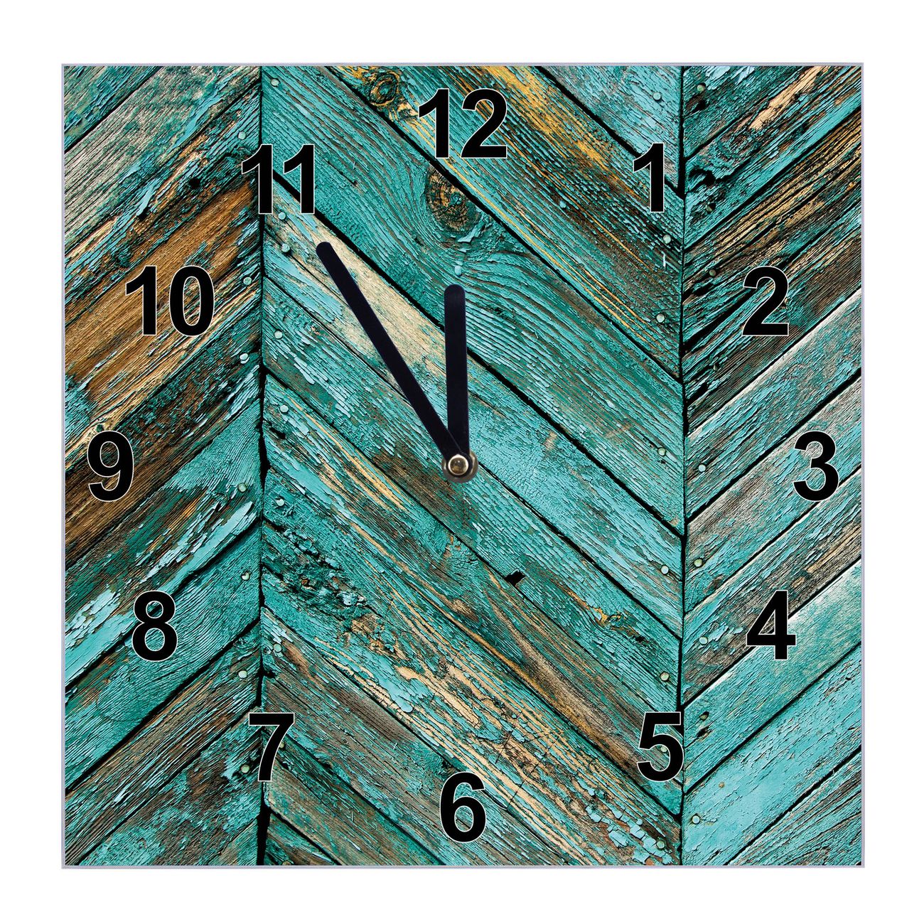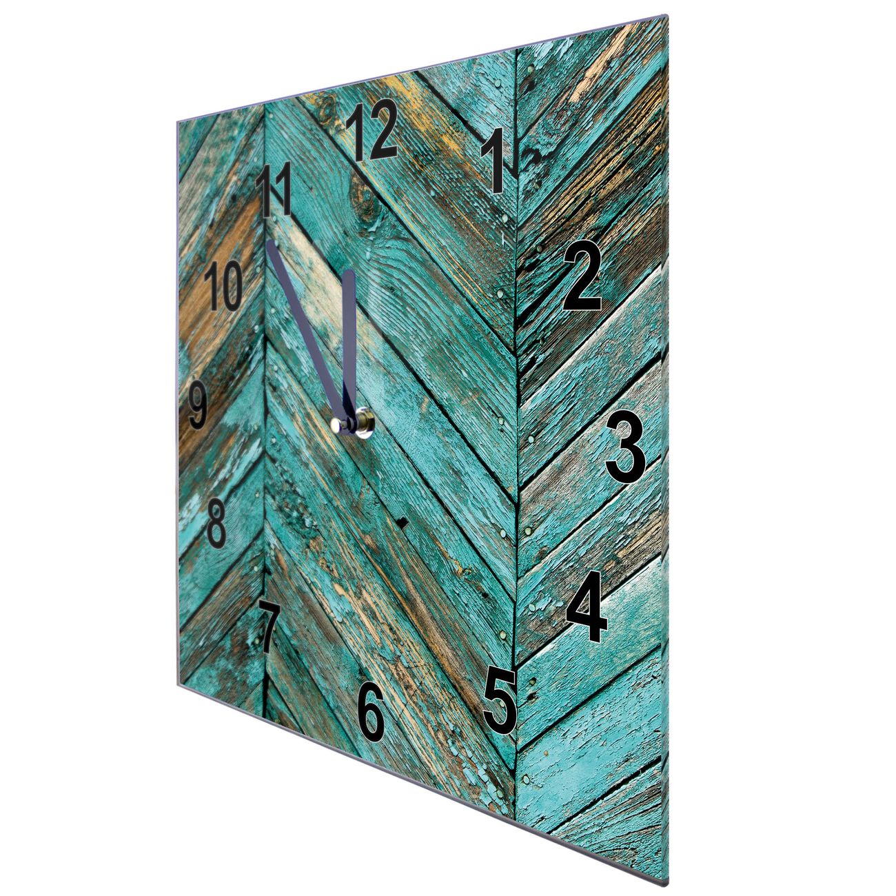 Glasuhr quadratisch Motiv Altes Holz Blau