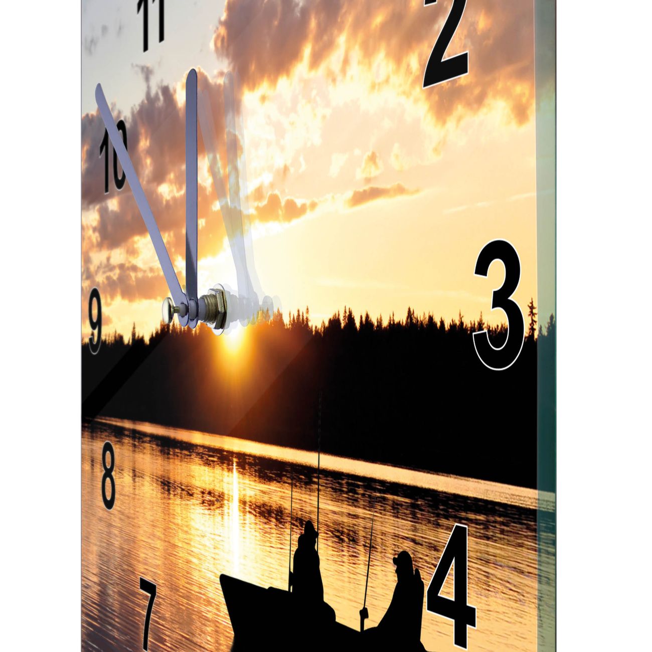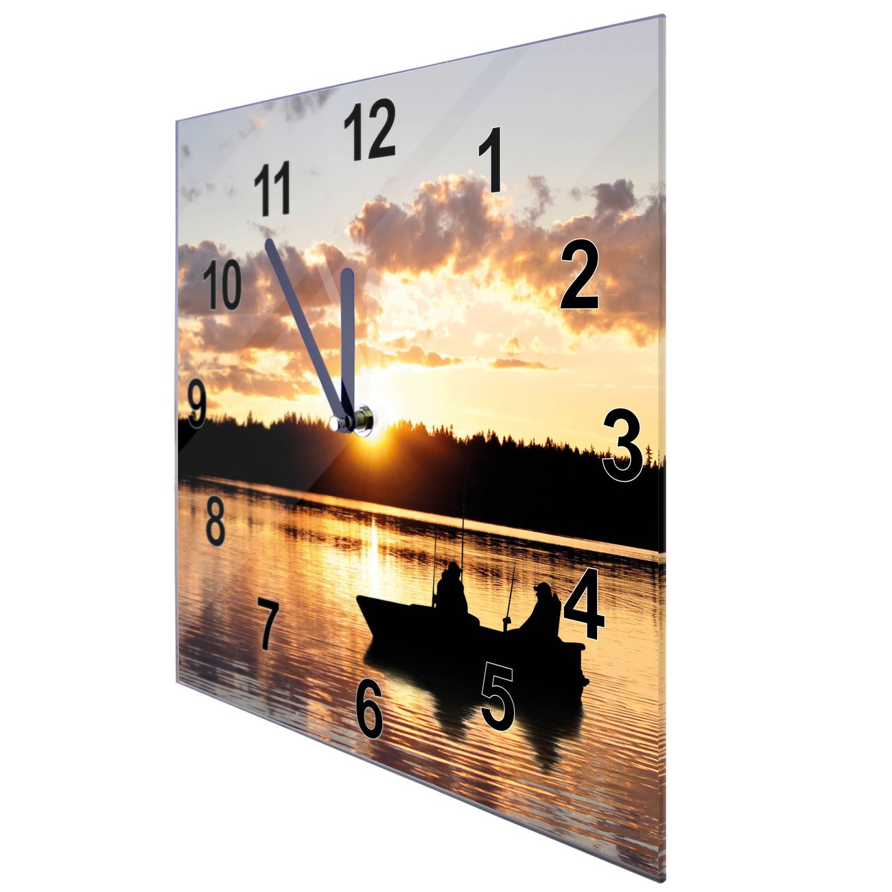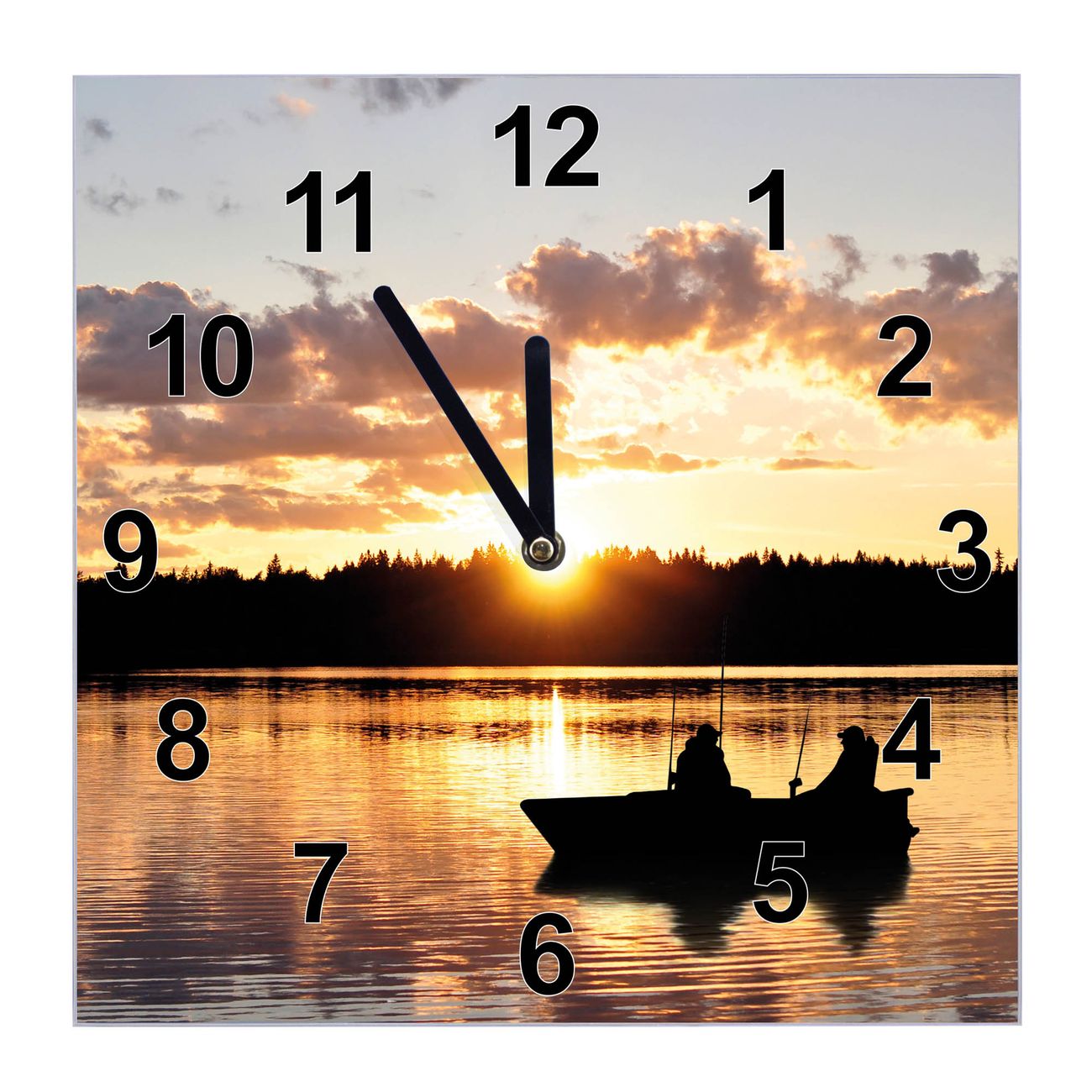 Glasuhr quadratisch Motiv Angler