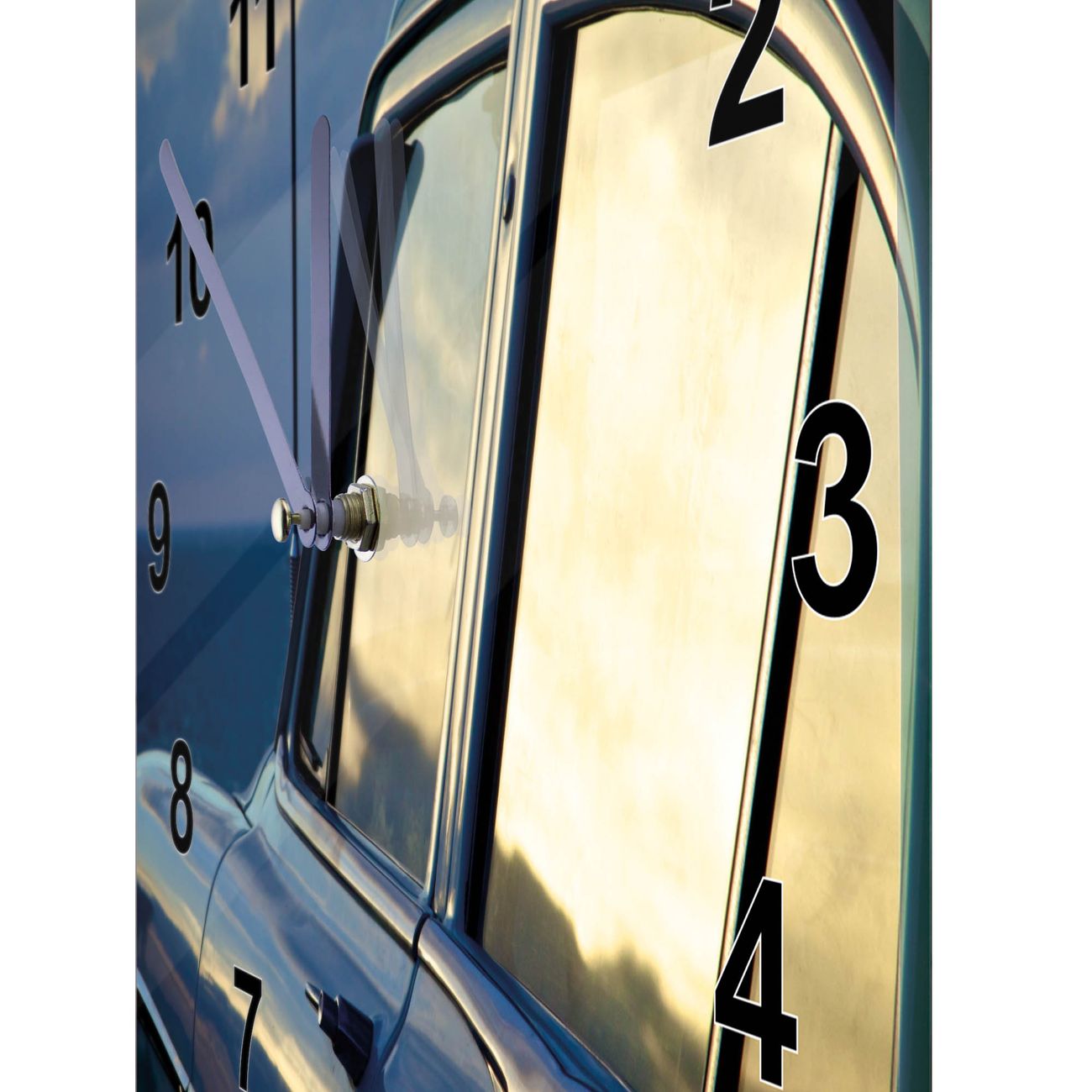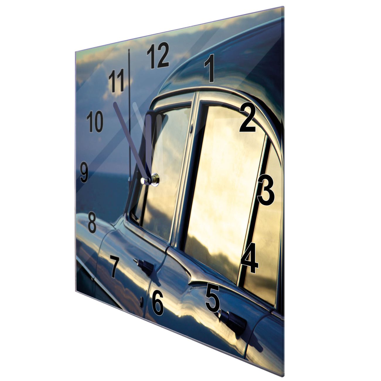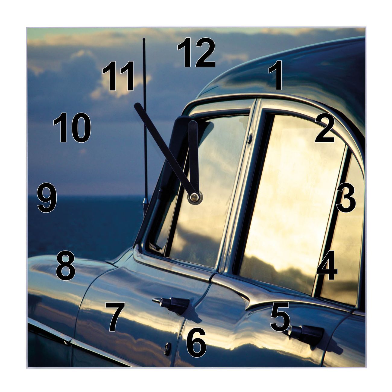 Glasuhr quadratisch Motiv Auto am Strand