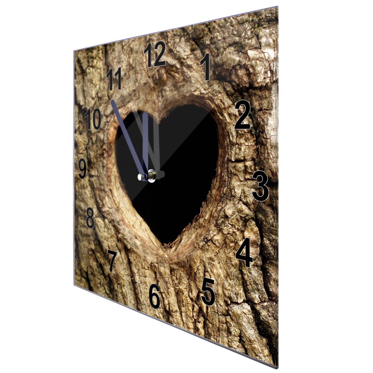 FUNKTION: Mit der banjado Wanduhr aus Glas mit dem Motiv Baumherz behalten Sie die Zeit immer im Blick, stilsicher und zuverlässig erkennen Sie auf einen Blick was die Stunde geschlagen hat. DESIGN: Die schlichte Form der Uhr sowie das individuelle Motiv passen sich hervorragend jedem Wohnraumkonzept an, egal ob klassisch, nostalgisch oder modern. DETAILS: Die Glasuhr ist quadratisch, 30 x 30cm groß und verfügt über ein geräuscharmes Uhrwerk mit schwarzen Zeigern. Das Motiv Baumherz befindet sich effektvoll hinter Glas. NUTZEN: Die banjado Glas Wanduhr verbindet Design und Funktion. Perfekt für Küche, Büro, Wohnzimmer oder Kinderzimmer, haben Sie die Zeit im Blick und eine schöne Wanddekoration. BANJADO: Wir fertigen alle Wanduhren auf Bestellung von Hand, erfüllen dabei auch gern Sonderwünsche. Wir wünschen viel Freude bei der Auswahl eines schönen Motivs. Herzlichst, banjado aus Sachsen