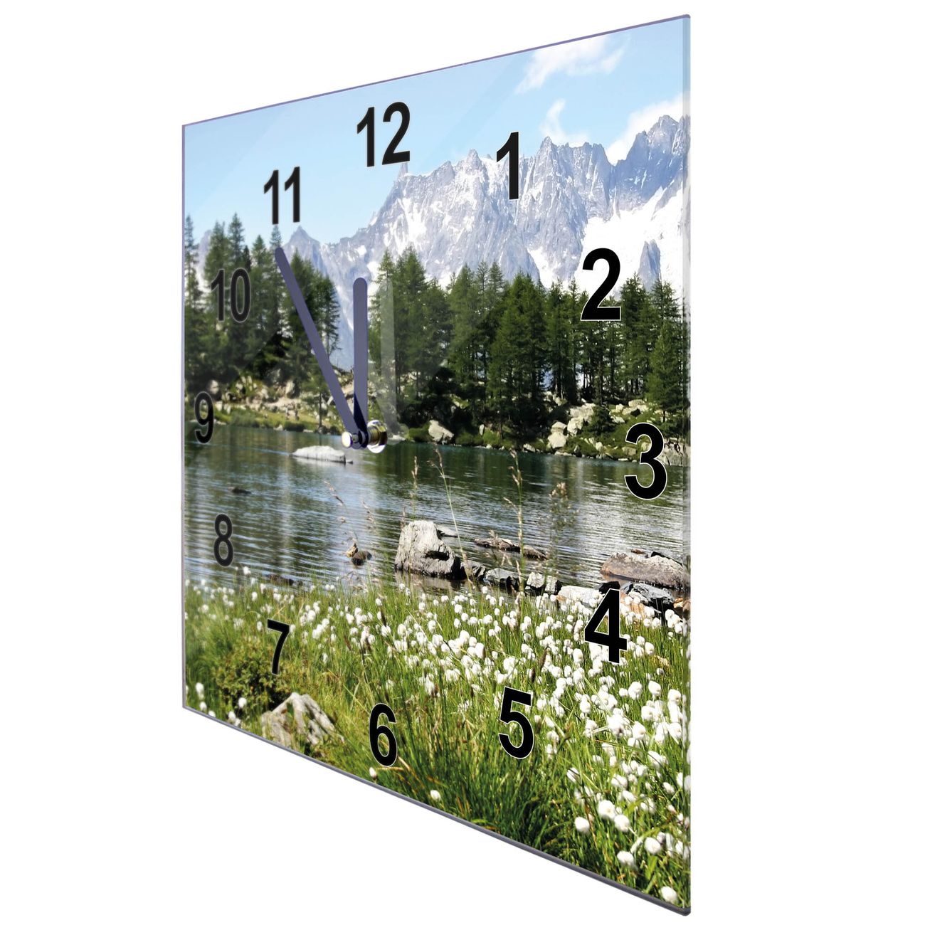 FUNKTION: Mit der banjado Wanduhr aus Glas mit dem Motiv Bergidylle behalten Sie die Zeit immer im Blick, stilsicher und zuverlässig erkennen Sie auf einen Blick was die Stunde geschlagen hat. DESIGN: Die schlichte Form der Uhr sowie das individuelle Motiv passen sich hervorragend jedem Wohnraumkonzept an, egal ob klassisch, nostalgisch oder modern. DETAILS: Die Glasuhr ist quadratisch, 30 x 30cm groß und verfügt über ein geräuscharmes Uhrwerk mit schwarzen Zeigern. Das Motiv Bergidylle befindet sich effektvoll hinter Glas. NUTZEN: Die banjado Glas Wanduhr verbindet Design und Funktion. Perfekt für Küche, Büro, Wohnzimmer oder Kinderzimmer, haben Sie die Zeit im Blick und eine schöne Wanddekoration. BANJADO: Wir fertigen alle Wanduhren auf Bestellung von Hand, erfüllen dabei auch gern Sonderwünsche. Wir wünschen viel Freude bei der Auswahl eines schönen Motivs. Herzlichst, banjado aus Sachsen