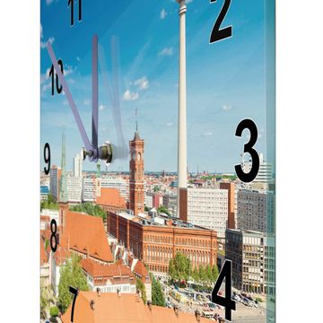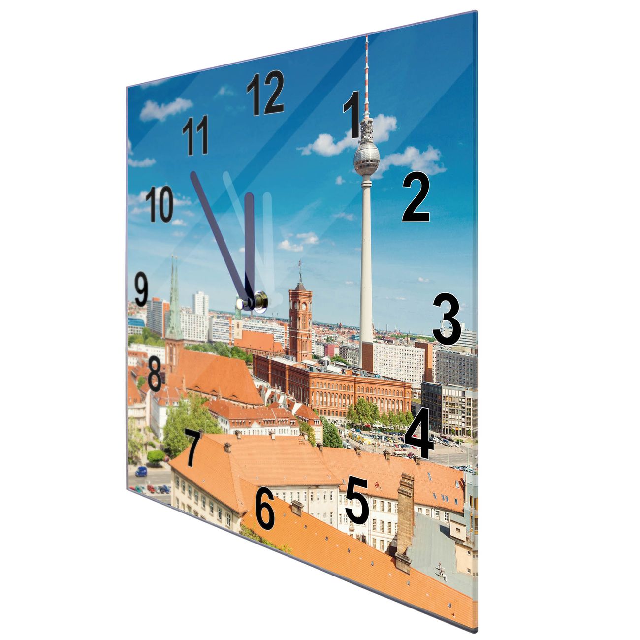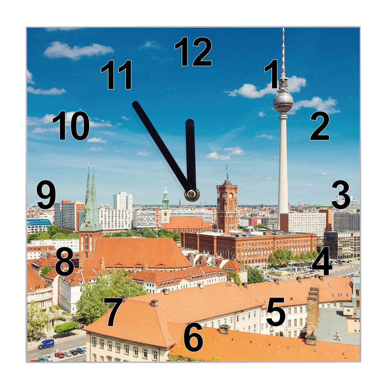 FUNKTION: Mit der banjado Wanduhr aus Glas mit dem Motiv Berlin Mitte behalten Sie die Zeit immer im Blick, stilsicher und zuverlässig erkennen Sie auf einen Blick was die Stunde geschlagen hat. DESIGN: Die schlichte Form der Uhr sowie das individuelle Motiv passen sich hervorragend jedem Wohnraumkonzept an, egal ob klassisch, nostalgisch oder modern. DETAILS: Die Glasuhr ist quadratisch, 30 x 30cm groß und verfügt über ein geräuscharmes Uhrwerk mit schwarzen Zeigern. Das Motiv Berlin Mitte befindet sich effektvoll hinter Glas. NUTZEN: Die banjado Glas Wanduhr verbindet Design und Funktion. Perfekt für Küche, Büro, Wohnzimmer oder Kinderzimmer, haben Sie die Zeit im Blick und eine schöne Wanddekoration. BANJADO: Wir fertigen alle Wanduhren auf Bestellung von Hand, erfüllen dabei auch gern Sonderwünsche. Wir wünschen viel Freude bei der Auswahl eines schönen Motivs. Herzlichst, banjado aus Sachsen