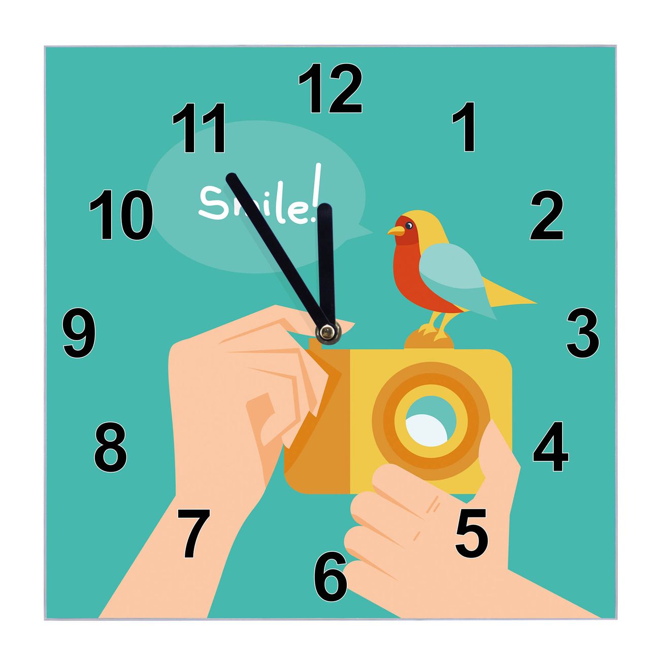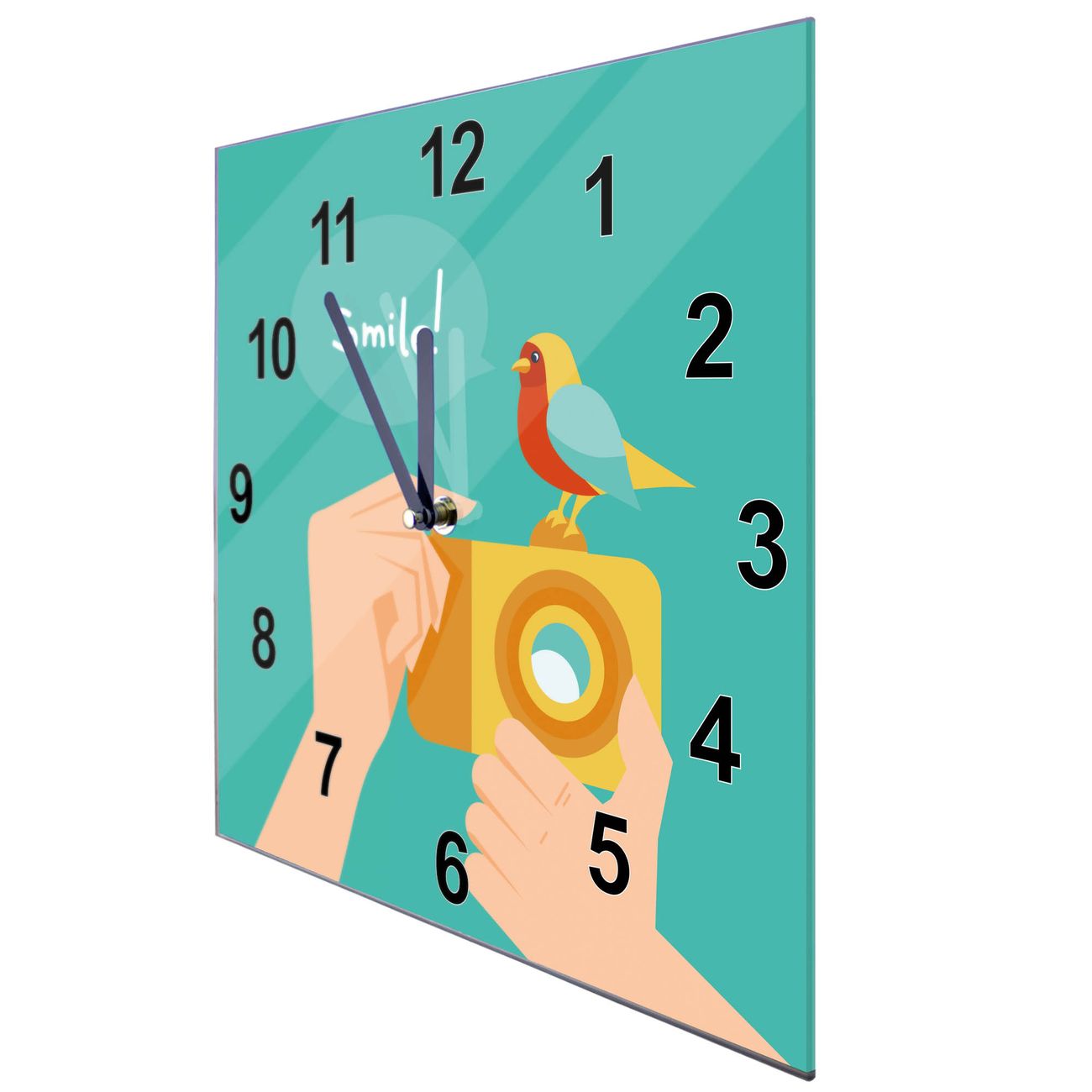 Glasuhr quadratisch Motiv Bitte Lächeln 2