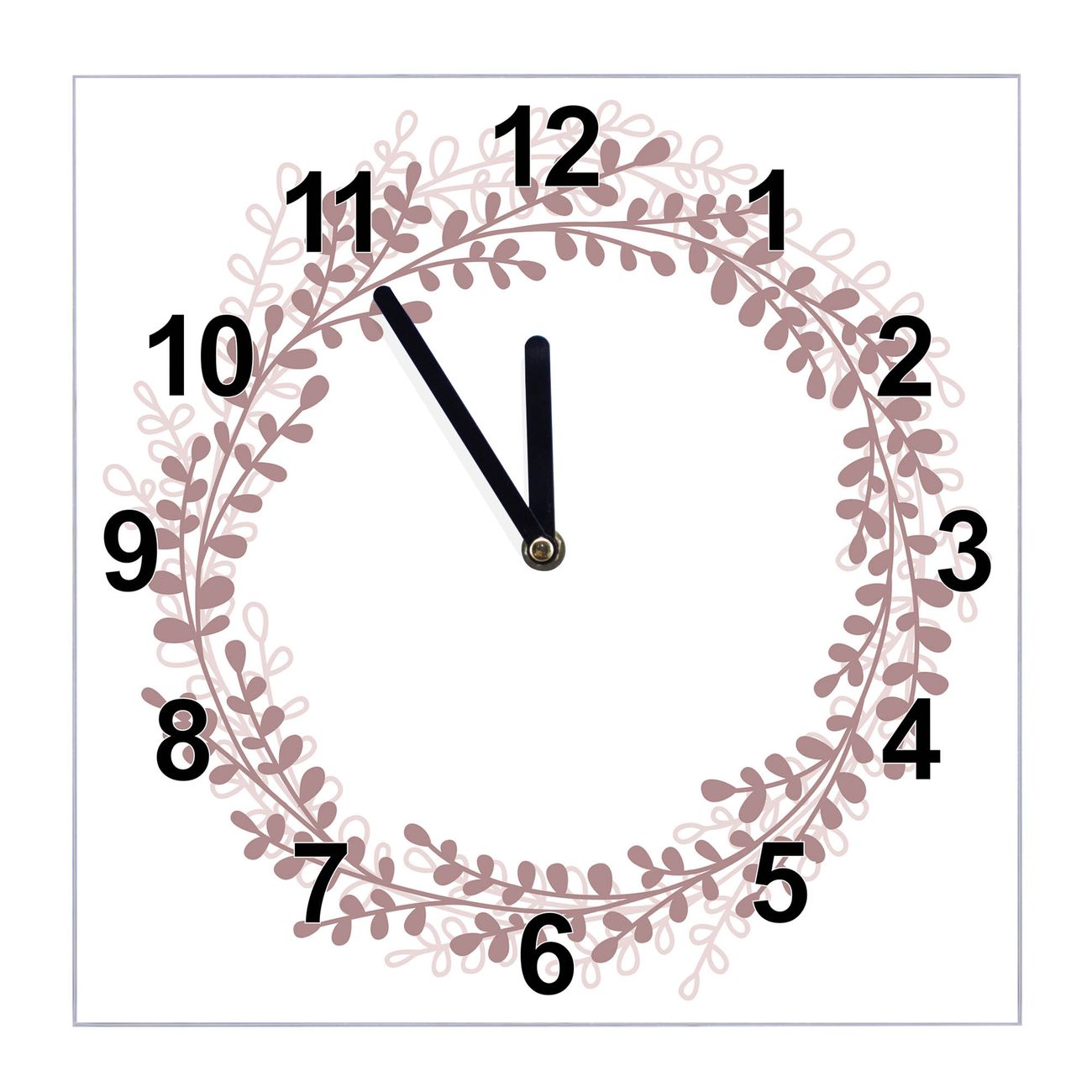 Glasuhr quadratisch Motiv Blätterkranz