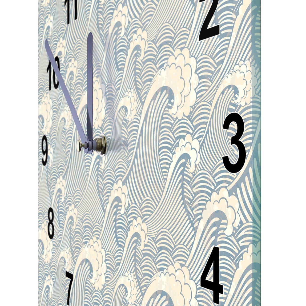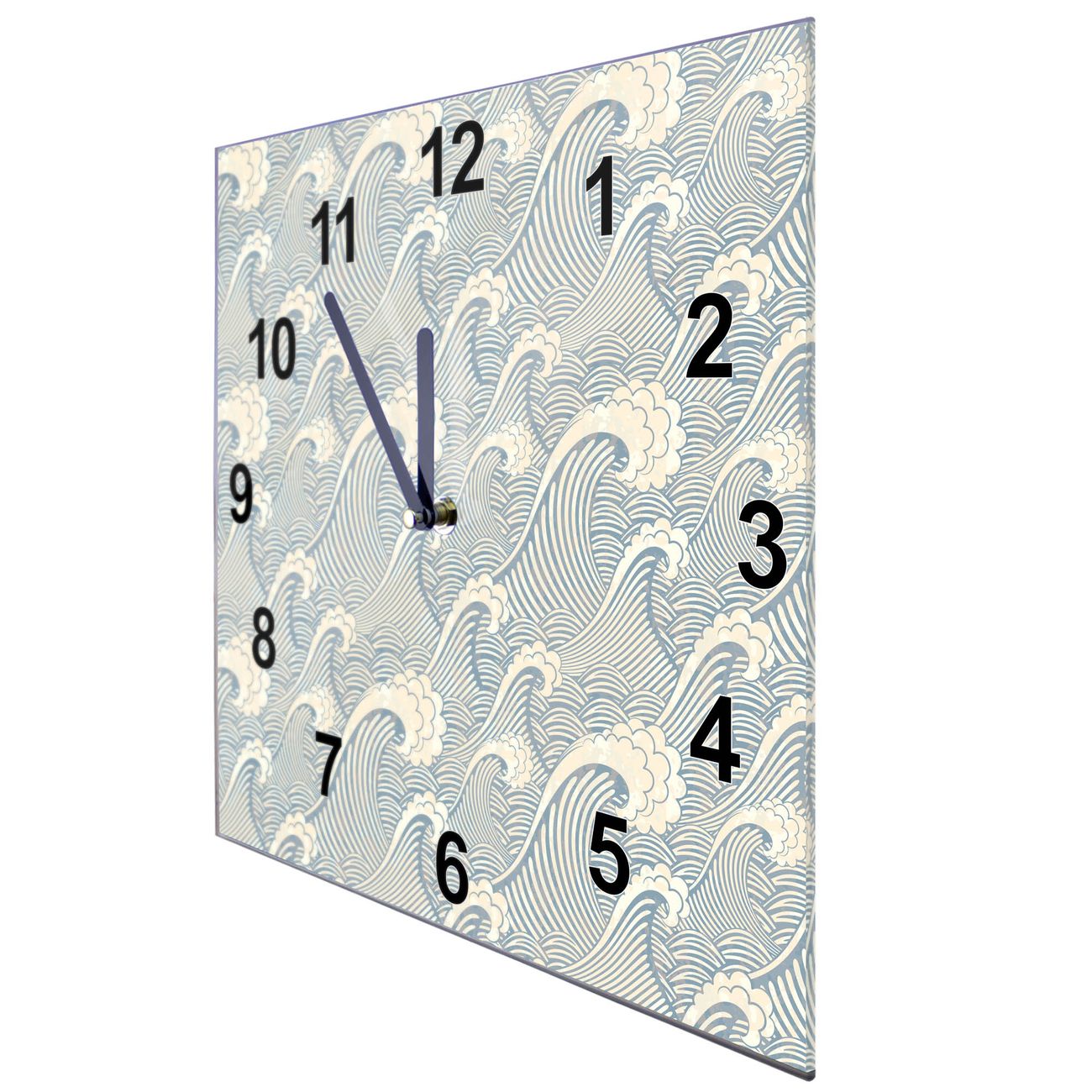 Glasuhr quadratisch Motiv Blaue Wellen