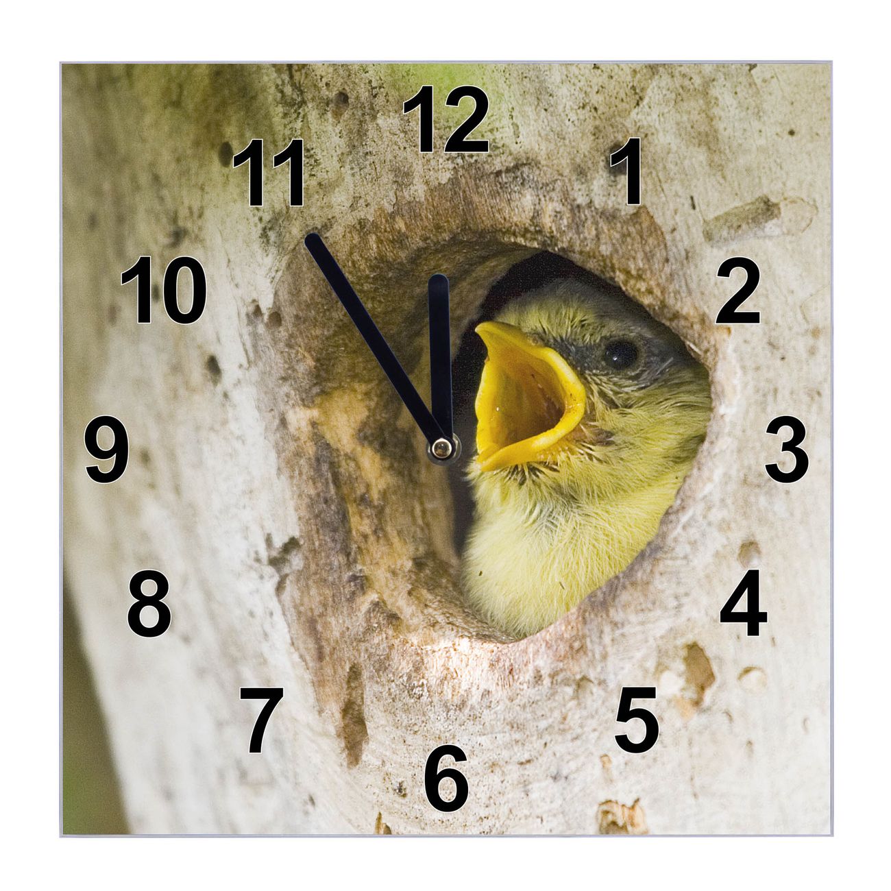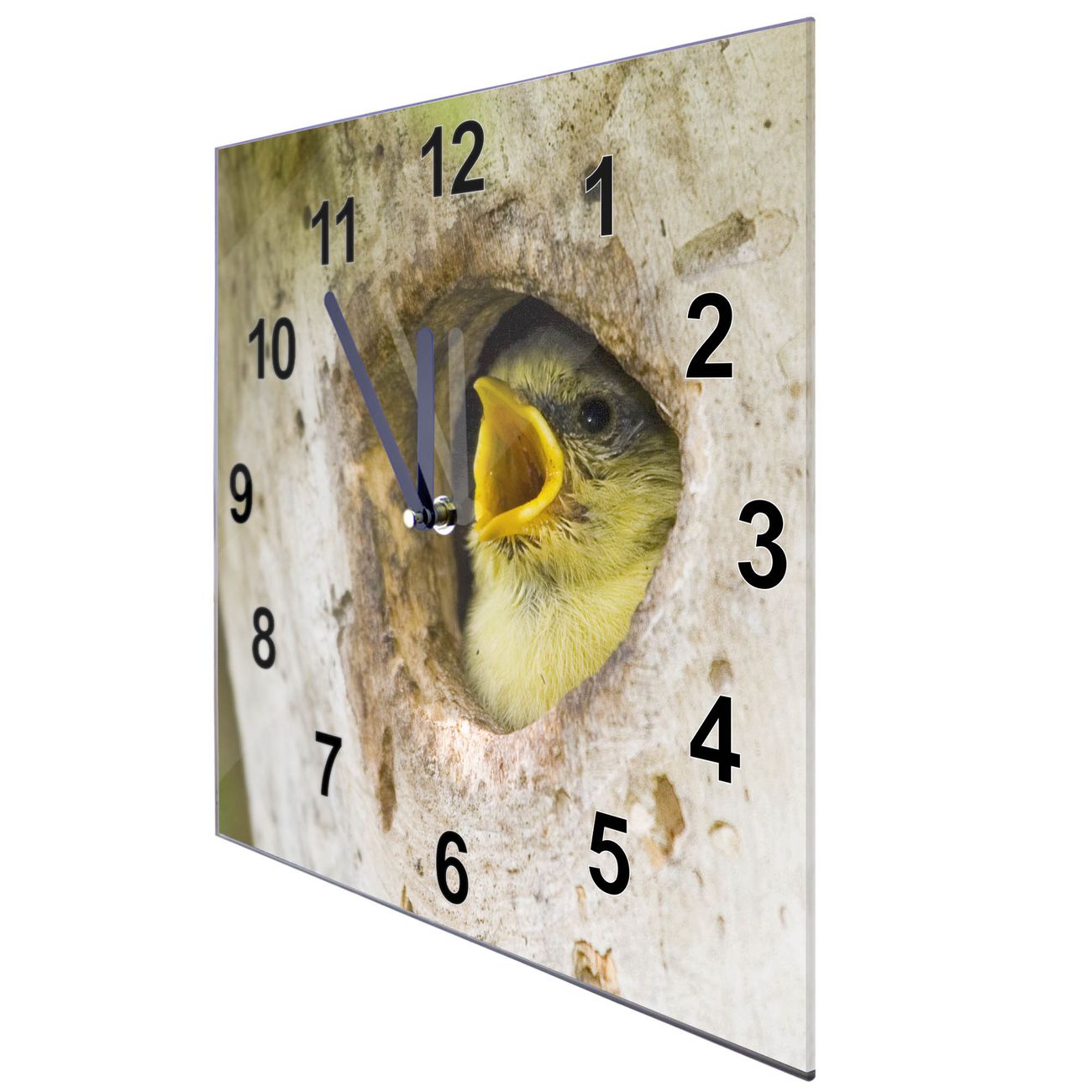 Glasuhr quadratisch Motiv Blaumeise
