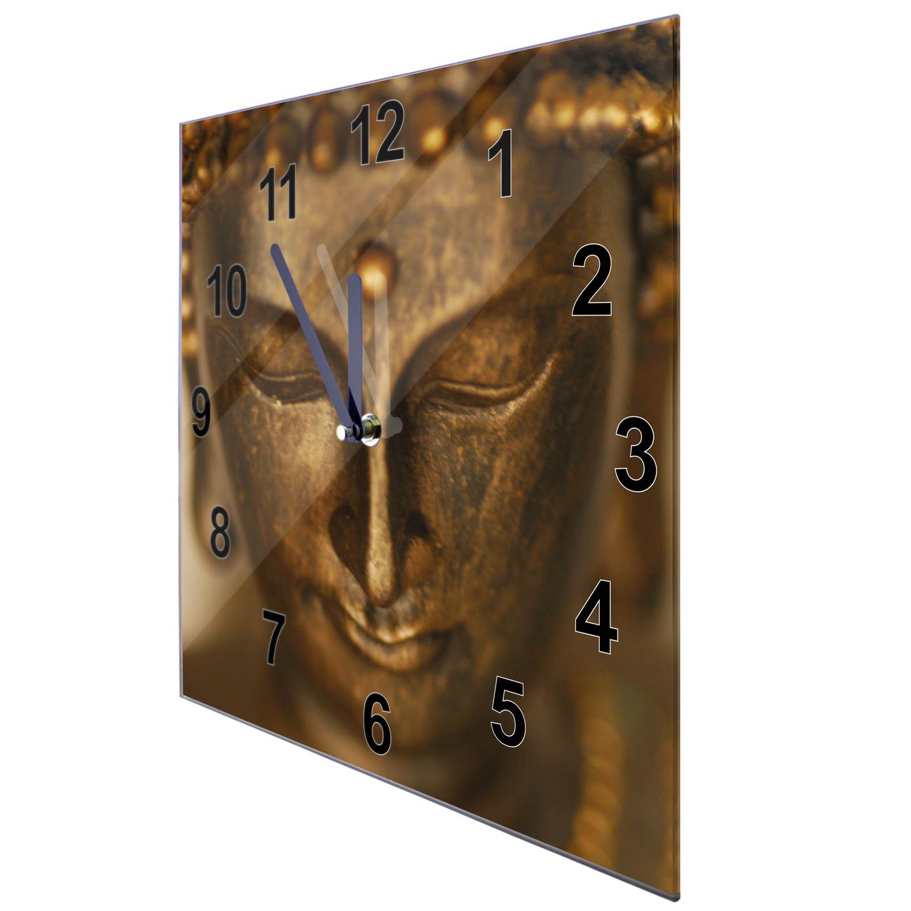 FUNKTION: Mit der banjado Wanduhr aus Glas mit dem Motiv Buddha Gold behalten Sie die Zeit immer im Blick, stilsicher und zuverlässig erkennen Sie auf einen Blick was die Stunde geschlagen hat. DESIGN: Die schlichte Form der Uhr sowie das individuelle Motiv passen sich hervorragend jedem Wohnraumkonzept an, egal ob klassisch, nostalgisch oder modern. DETAILS: Die Glasuhr ist quadratisch, 30 x 30cm groß und verfügt über ein geräuscharmes Uhrwerk mit schwarzen Zeigern. Das Motiv Buddha Gold befindet sich effektvoll hinter Glas. NUTZEN: Die banjado Glas Wanduhr verbindet Design und Funktion. Perfekt für Küche, Büro, Wohnzimmer oder Kinderzimmer, haben Sie die Zeit im Blick und eine schöne Wanddekoration. BANJADO: Wir fertigen alle Wanduhren auf Bestellung von Hand, erfüllen dabei auch gern Sonderwünsche. Wir wünschen viel Freude bei der Auswahl eines schönen Motivs. Herzlichst, banjado aus Sachsen