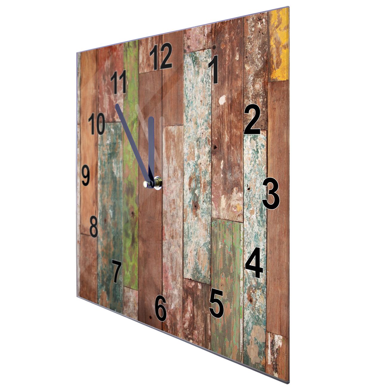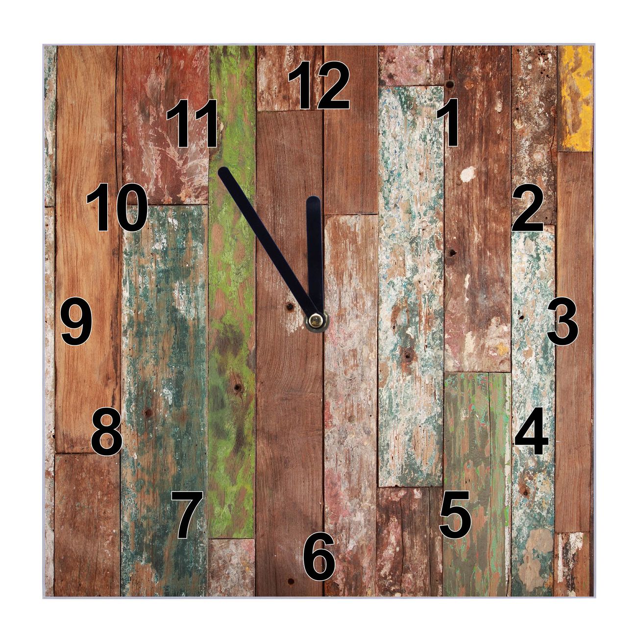 FUNKTION: Mit der banjado Wanduhr aus Glas mit dem Motiv Buntes Holz behalten Sie die Zeit immer im Blick, stilsicher und zuverlässig erkennen Sie auf einen Blick was die Stunde geschlagen hat. DESIGN: Die schlichte Form der Uhr sowie das individuelle Motiv passen sich hervorragend jedem Wohnraumkonzept an, egal ob klassisch, nostalgisch oder modern. DETAILS: Die Glasuhr ist quadratisch, 30 x 30cm groß und verfügt über ein geräuscharmes Uhrwerk mit schwarzen Zeigern. Das Motiv Buntes Holz befindet sich effektvoll hinter Glas. NUTZEN: Die banjado Glas Wanduhr verbindet Design und Funktion. Perfekt für Küche, Büro, Wohnzimmer oder Kinderzimmer, haben Sie die Zeit im Blick und eine schöne Wanddekoration. BANJADO: Wir fertigen alle Wanduhren auf Bestellung von Hand, erfüllen dabei auch gern Sonderwünsche. Wir wünschen viel Freude bei der Auswahl eines schönen Motivs. Herzlichst, banjado aus Sachsen