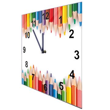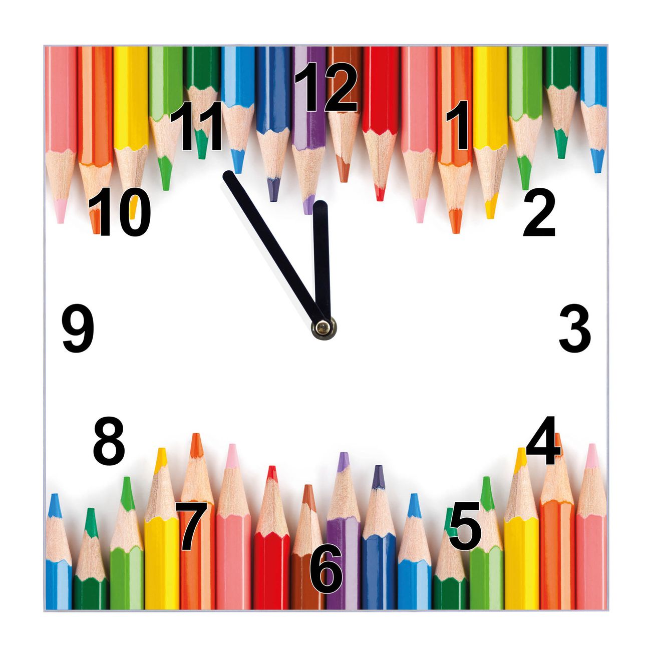 FUNKTION: Mit der banjado Wanduhr aus Glas mit dem Motiv Buntstifte behalten Sie die Zeit immer im Blick, stilsicher und zuverlässig erkennen Sie auf einen Blick was die Stunde geschlagen hat. DESIGN: Die schlichte Form der Uhr sowie das individuelle Motiv passen sich hervorragend jedem Wohnraumkonzept an, egal ob klassisch, nostalgisch oder modern. DETAILS: Die Glasuhr ist quadratisch, 30 x 30cm groß und verfügt über ein geräuscharmes Uhrwerk mit schwarzen Zeigern. Das Motiv Buntstifte befindet sich effektvoll hinter Glas. NUTZEN: Die banjado Glas Wanduhr verbindet Design und Funktion. Perfekt für Küche, Büro, Wohnzimmer oder Kinderzimmer, haben Sie die Zeit im Blick und eine schöne Wanddekoration. BANJADO: Wir fertigen alle Wanduhren auf Bestellung von Hand, erfüllen dabei auch gern Sonderwünsche. Wir wünschen viel Freude bei der Auswahl eines schönen Motivs. Herzlichst, banjado aus Sachsen