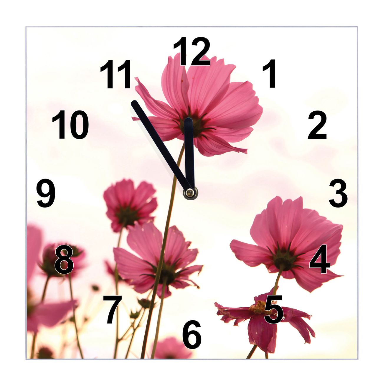 Glasuhr quadratisch Motiv Cosmea