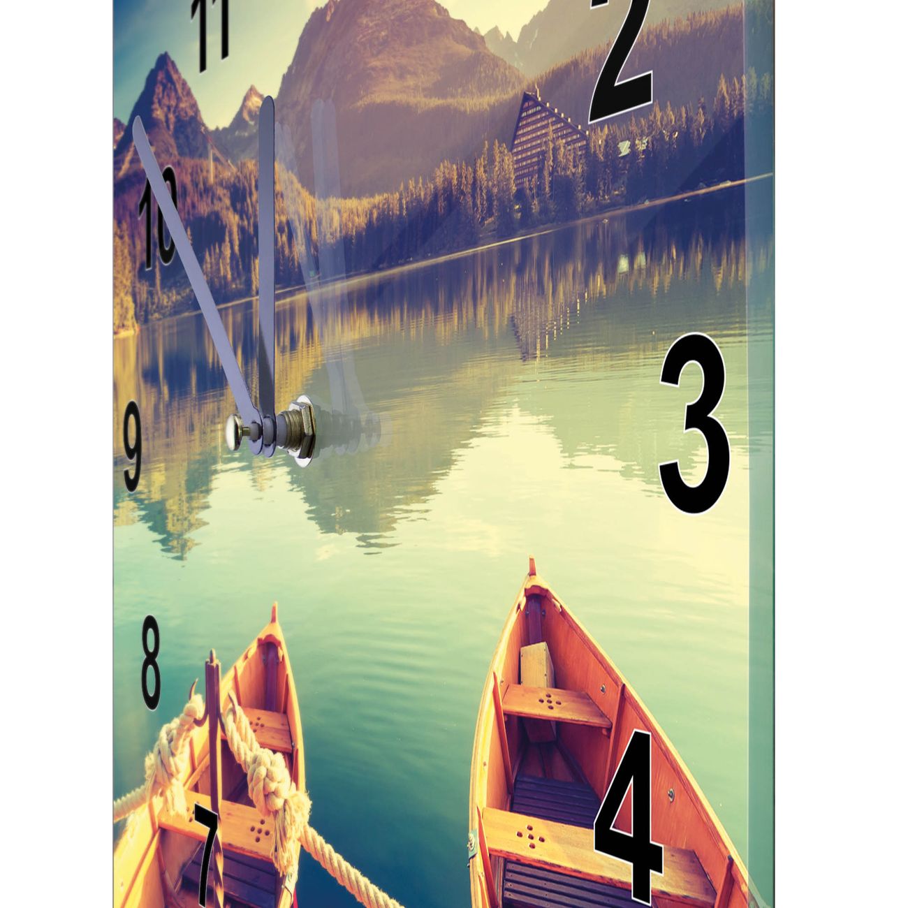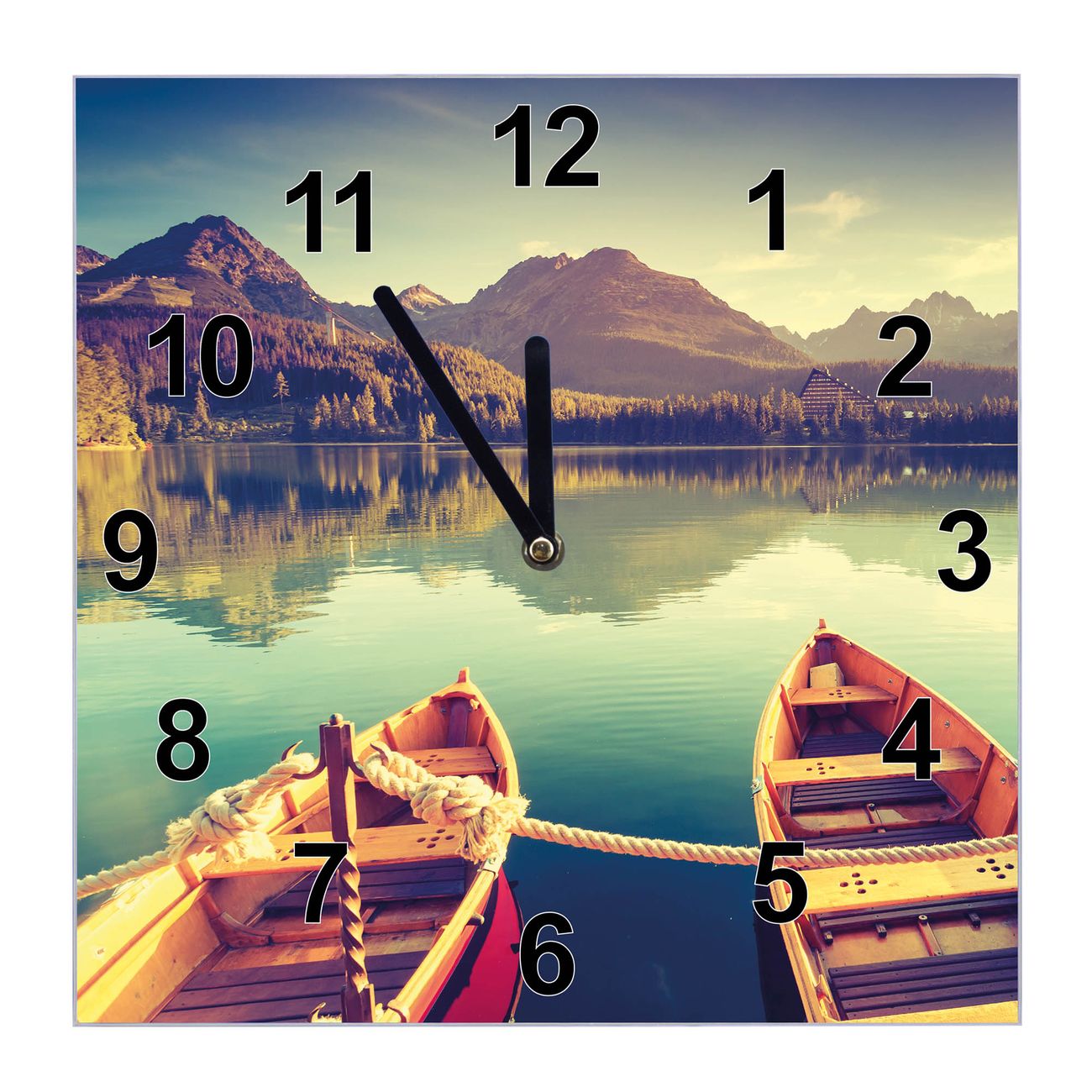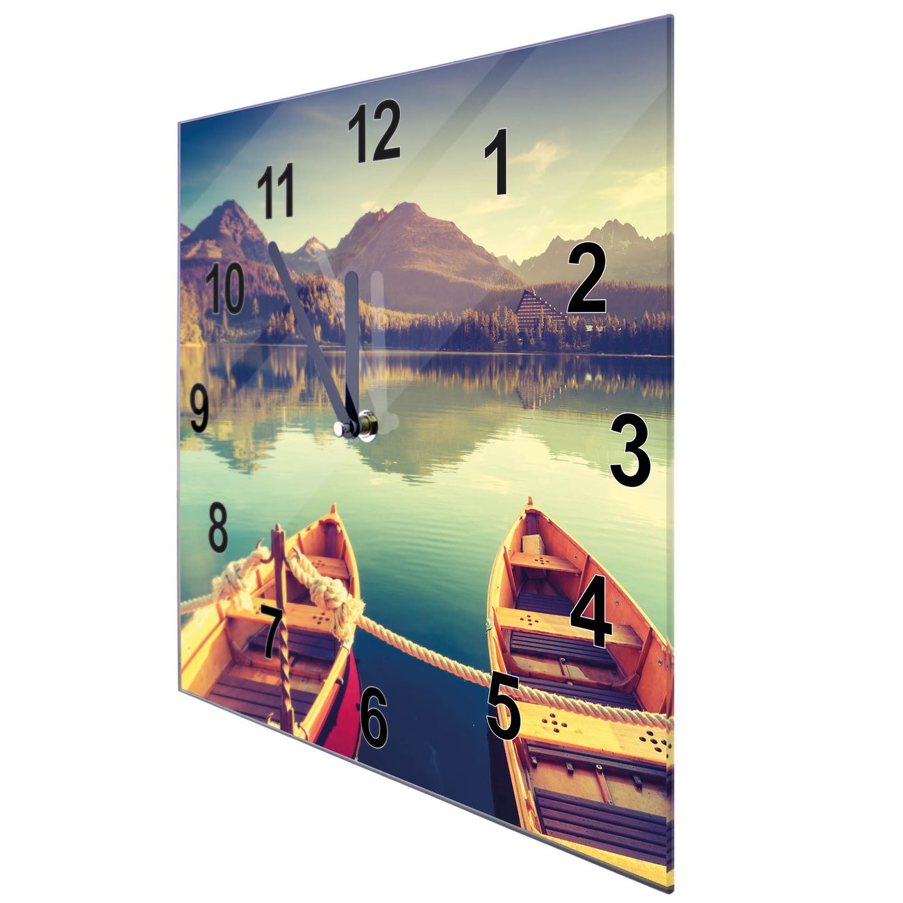 Glasuhr quadratisch Motiv Drei Boote Am Steg