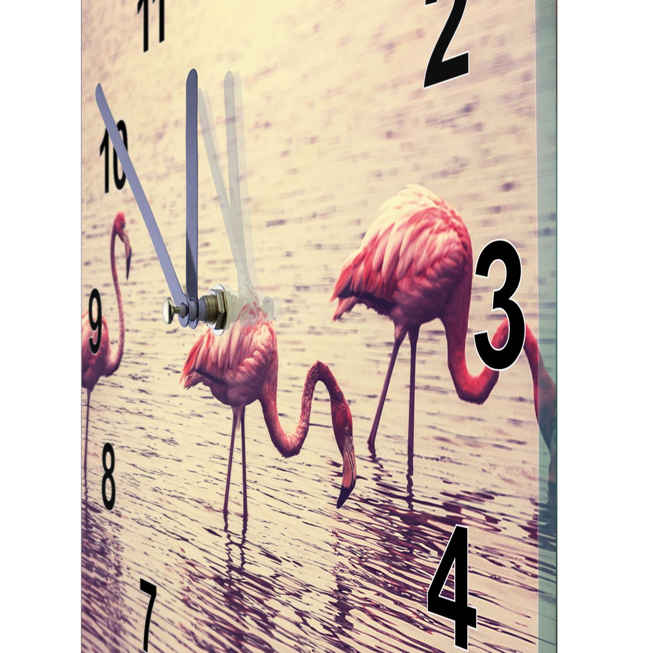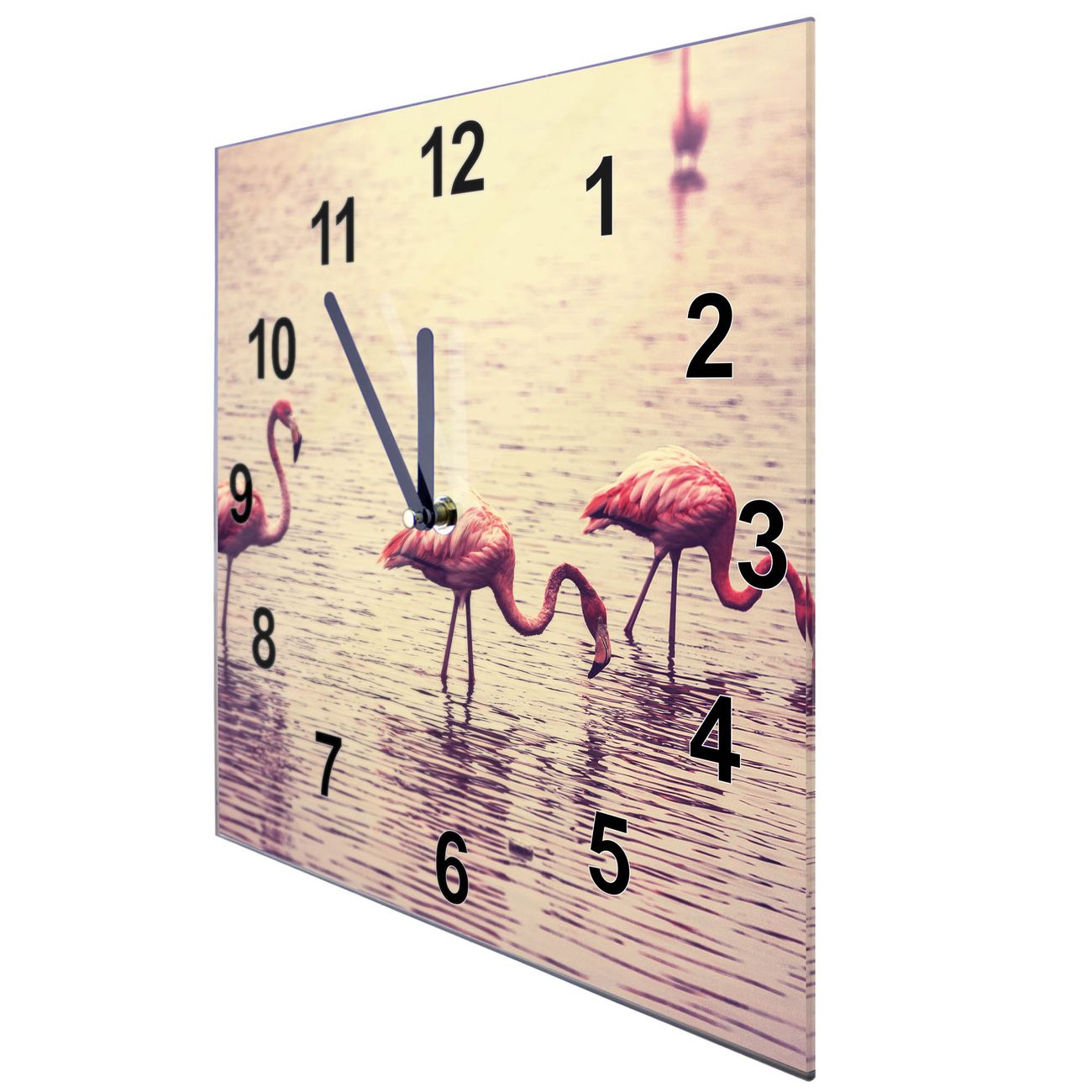 Glasuhr quadratisch Motiv Drei Flamnigos