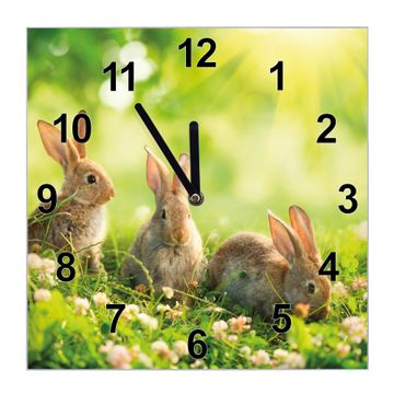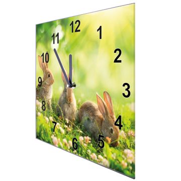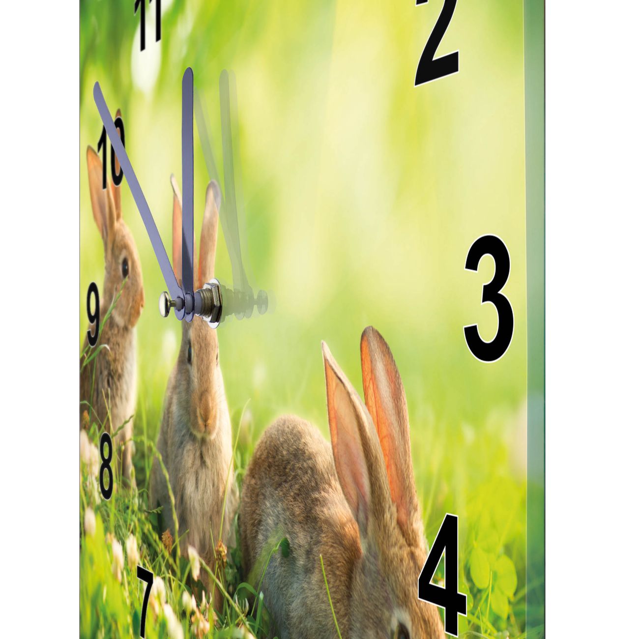FUNKTION: Mit der banjado Wanduhr aus Glas mit dem Motiv Drei Hasen behalten Sie die Zeit immer im Blick, stilsicher und zuverlässig erkennen Sie auf einen Blick was die Stunde geschlagen hat. DESIGN: Die schlichte Form der Uhr sowie das individuelle Motiv passen sich hervorragend jedem Wohnraumkonzept an, egal ob klassisch, nostalgisch oder modern. DETAILS: Die Glasuhr ist quadratisch, 30 x 30cm groß und verfügt über ein geräuscharmes Uhrwerk mit schwarzen Zeigern. Das Motiv Drei Hasen befindet sich effektvoll hinter Glas. NUTZEN: Die banjado Glas Wanduhr verbindet Design und Funktion. Perfekt für Küche, Büro, Wohnzimmer oder Kinderzimmer, haben Sie die Zeit im Blick und eine schöne Wanddekoration. BANJADO: Wir fertigen alle Wanduhren auf Bestellung von Hand, erfüllen dabei auch gern Sonderwünsche. Wir wünschen viel Freude bei der Auswahl eines schönen Motivs. Herzlichst, banjado aus Sachsen