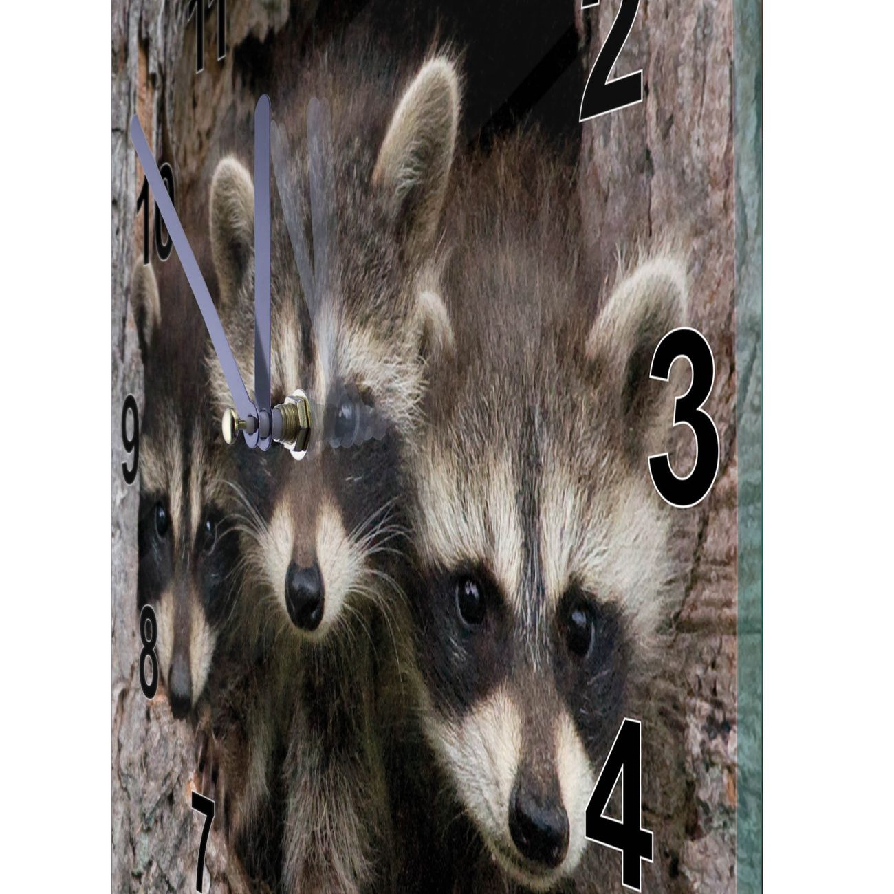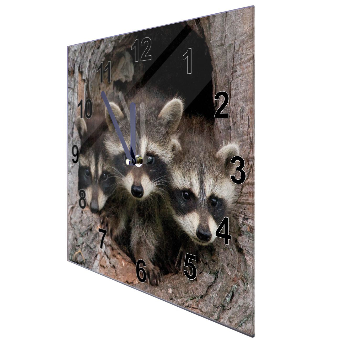 Glasuhr quadratisch Motiv Drei Waschbären