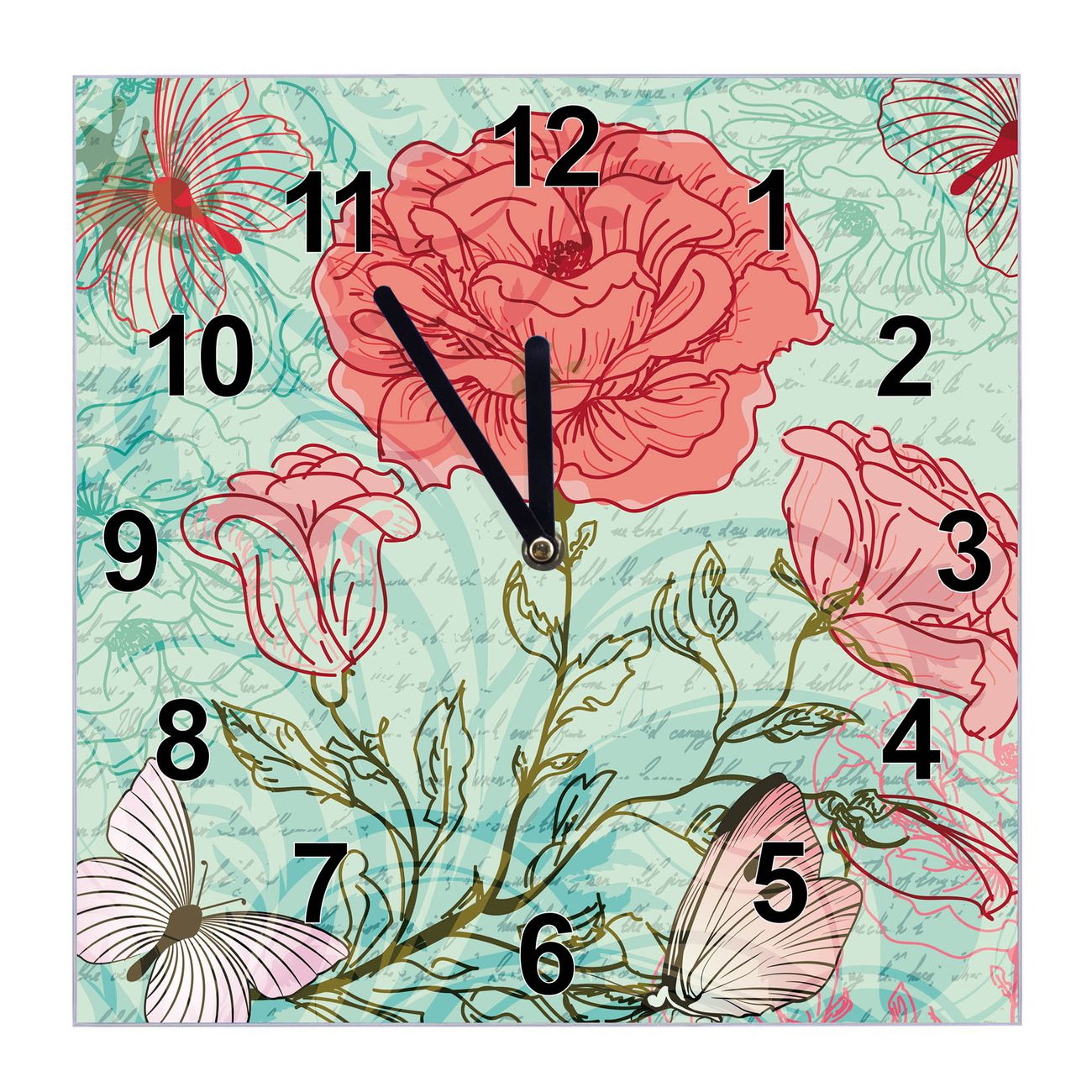 Glasuhr quadratisch Motiv Eine Rose Ist Eine Rose