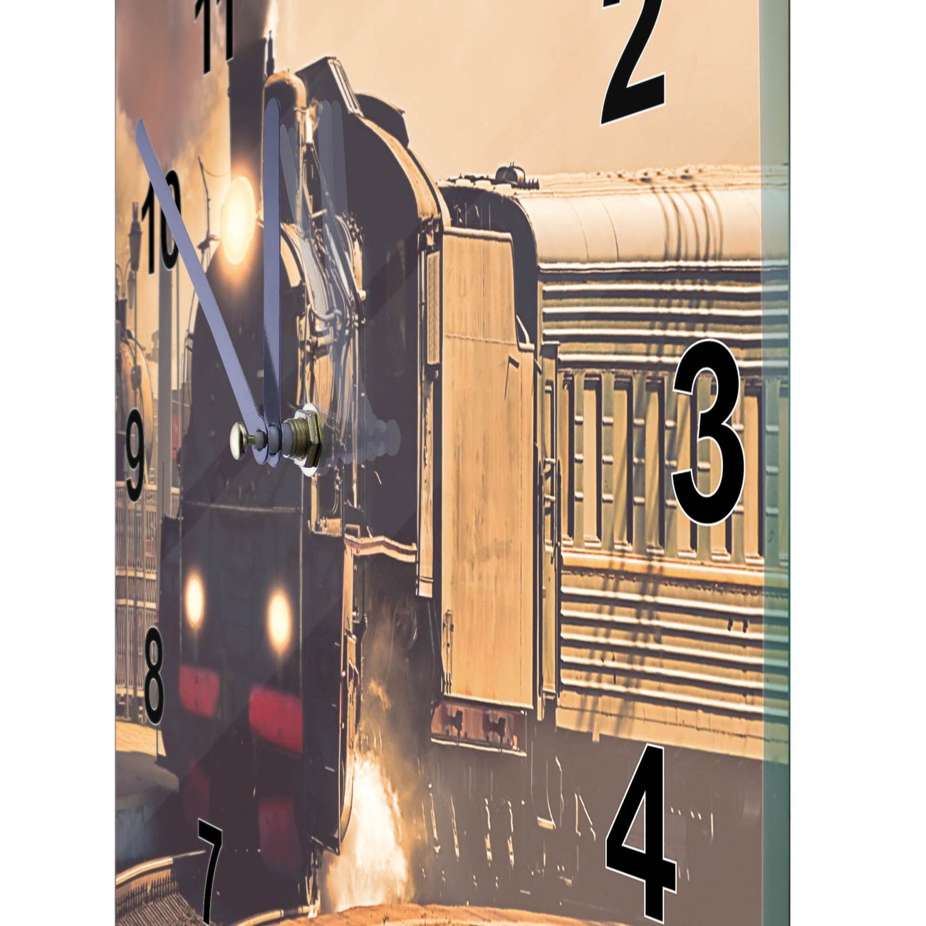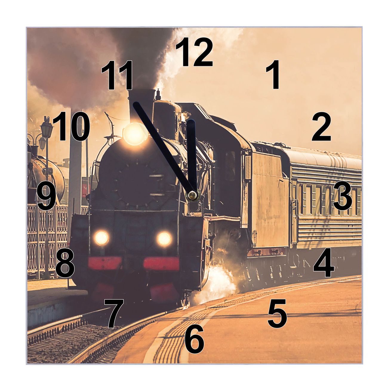 Glasuhr quadratisch Motiv Einfahrender Zug