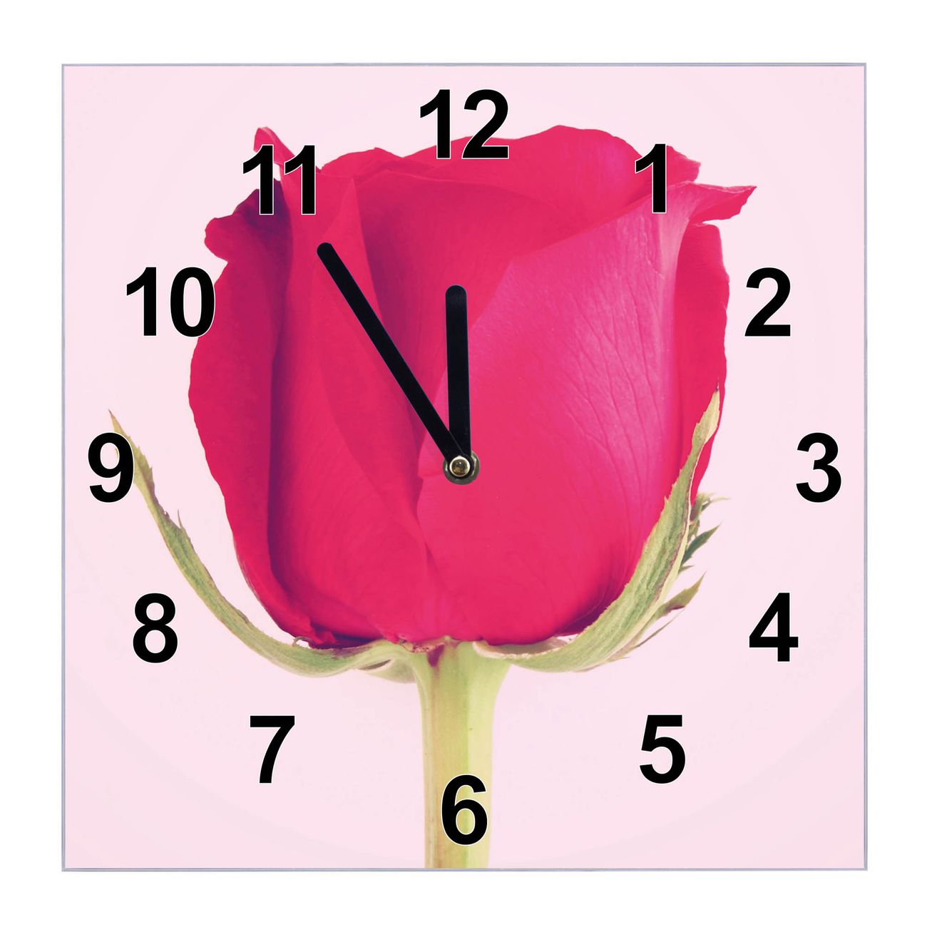 FUNKTION: Mit der banjado Wanduhr aus Glas mit dem Motiv Einzelne Rose behalten Sie die Zeit immer im Blick, stilsicher und zuverlässig erkennen Sie auf einen Blick was die Stunde geschlagen hat. DESIGN: Die schlichte Form der Uhr sowie das individuelle Motiv passen sich hervorragend jedem Wohnraumkonzept an, egal ob klassisch, nostalgisch oder modern. DETAILS: Die Glasuhr ist quadratisch, 30 x 30cm groß und verfügt über ein geräuscharmes Uhrwerk mit schwarzen Zeigern. Das Motiv Einzelne Rose befindet sich effektvoll hinter Glas. NUTZEN: Die banjado Glas Wanduhr verbindet Design und Funktion. Perfekt für Küche, Büro, Wohnzimmer oder Kinderzimmer, haben Sie die Zeit im Blick und eine schöne Wanddekoration. BANJADO: Wir fertigen alle Wanduhren auf Bestellung von Hand, erfüllen dabei auch gern Sonderwünsche. Wir wünschen viel Freude bei der Auswahl eines schönen Motivs. Herzlichst, banjado aus Sachsen