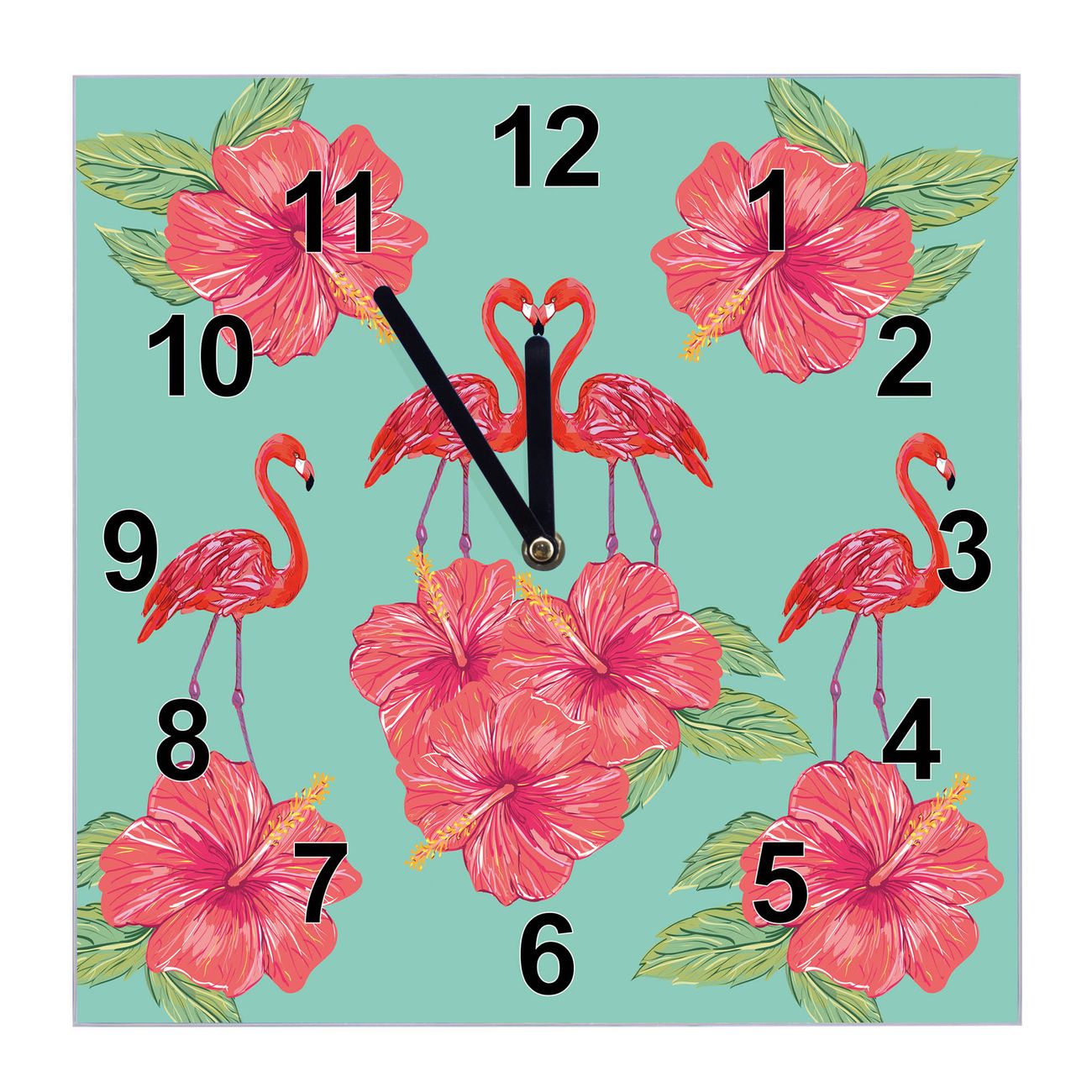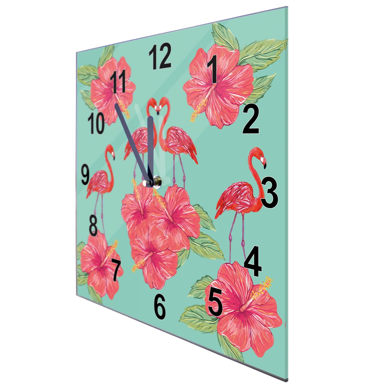 Glasuhr quadratisch Motiv Flamingo Liebe