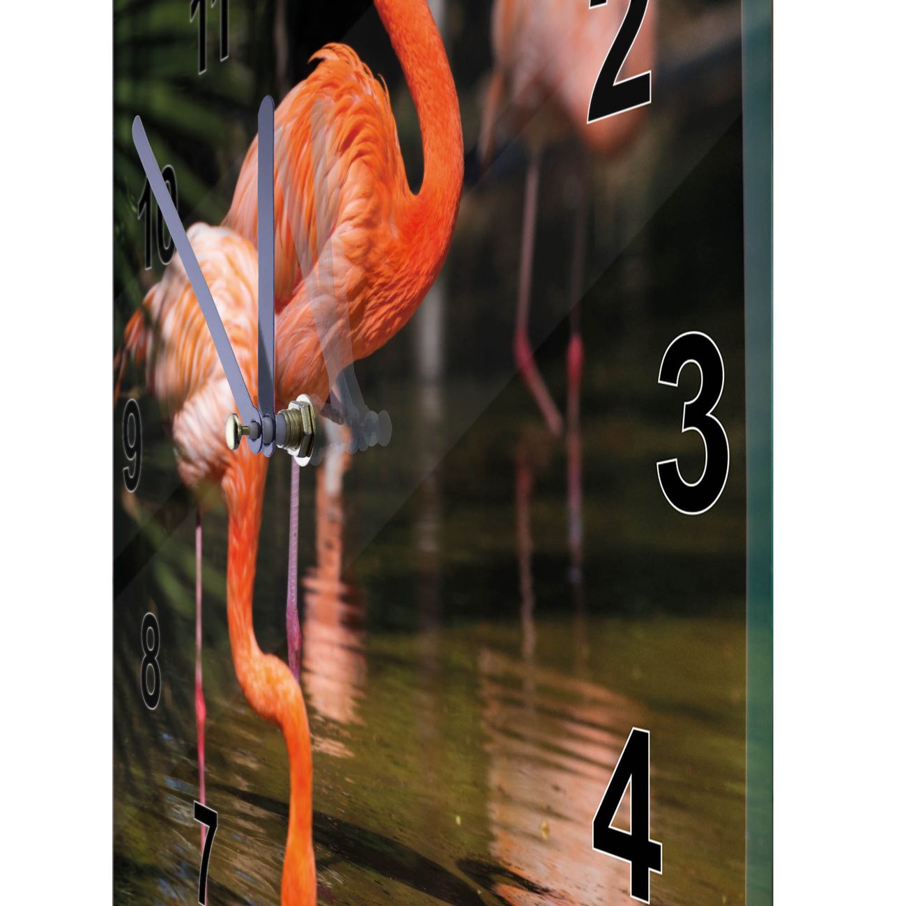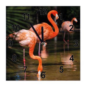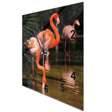 Glasuhr quadratisch Motiv Flamingo