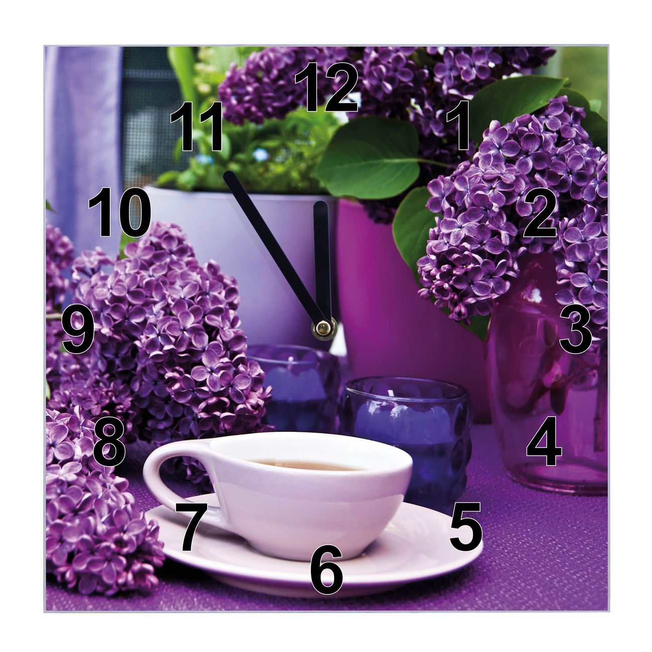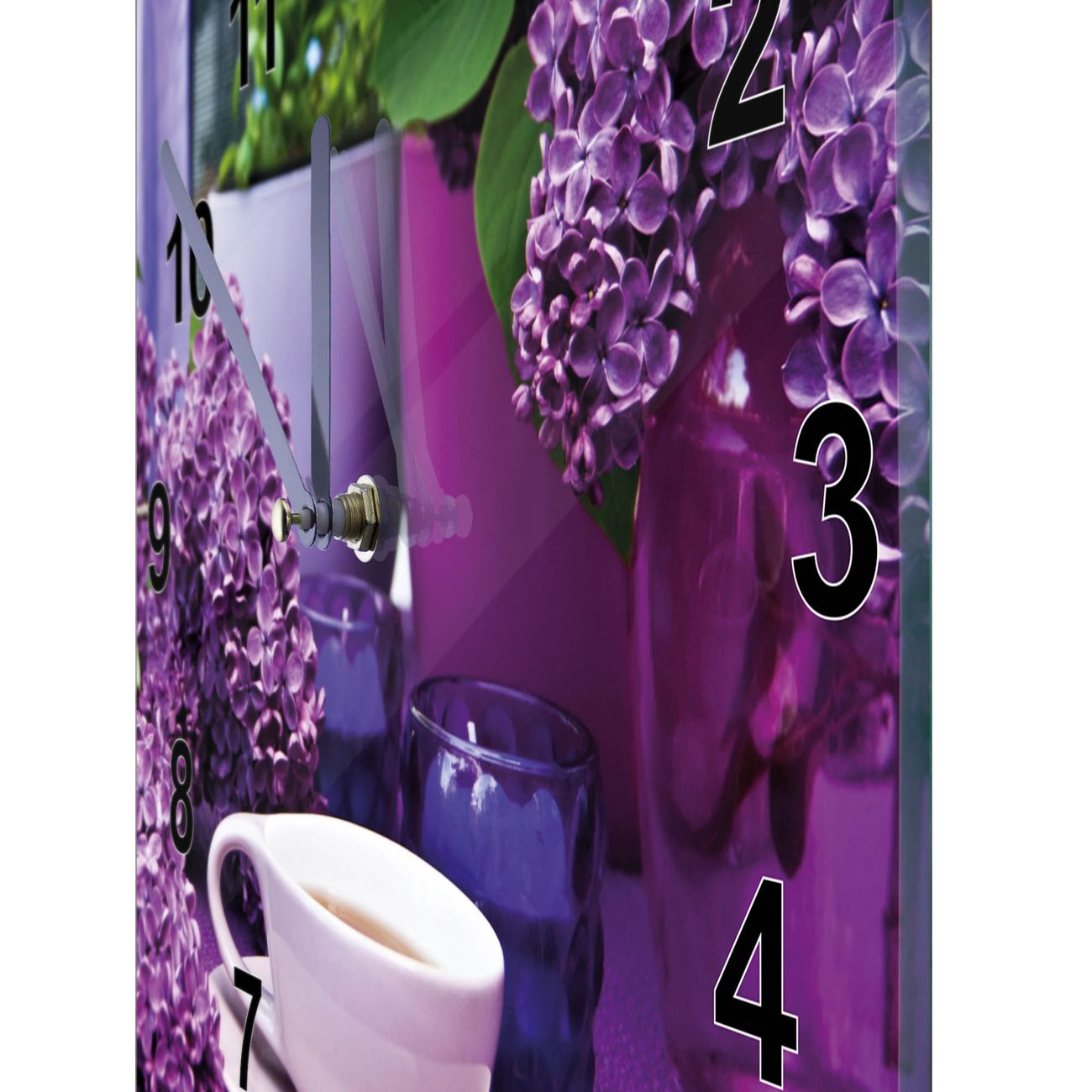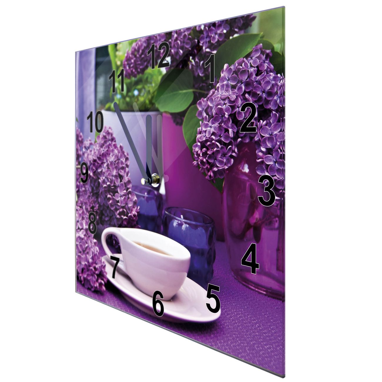 Glasuhr quadratisch Motiv Flieder