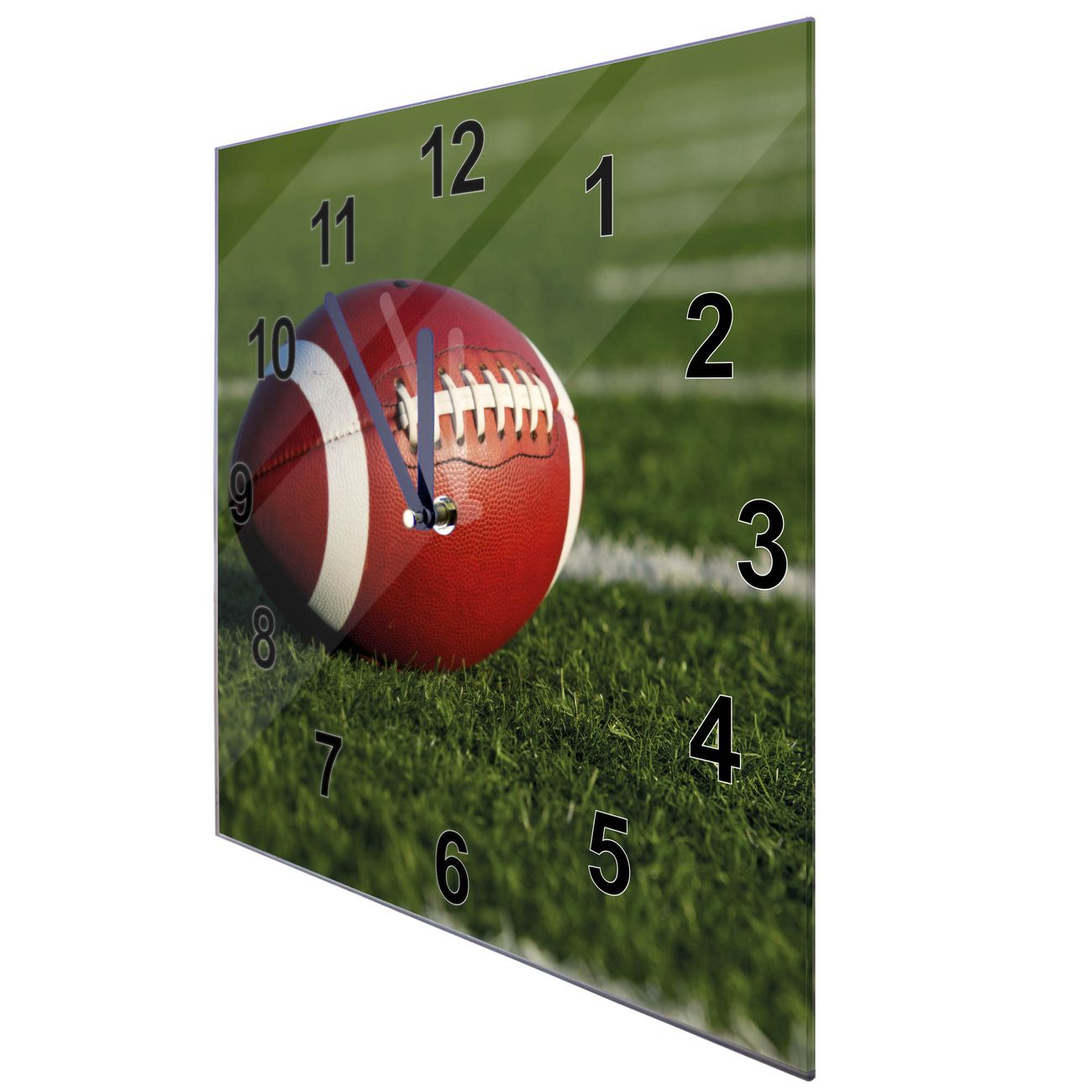 FUNKTION: Mit der banjado Wanduhr aus Glas mit dem Motiv Football behalten Sie die Zeit immer im Blick, stilsicher und zuverlässig erkennen Sie auf einen Blick was die Stunde geschlagen hat. DESIGN: Die schlichte Form der Uhr sowie das individuelle Motiv passen sich hervorragend jedem Wohnraumkonzept an, egal ob klassisch, nostalgisch oder modern. DETAILS: Die Glasuhr ist quadratisch, 30 x 30cm groß und verfügt über ein geräuscharmes Uhrwerk mit schwarzen Zeigern. Das Motiv Football befindet sich effektvoll hinter Glas. NUTZEN: Die banjado Glas Wanduhr verbindet Design und Funktion. Perfekt für Küche, Büro, Wohnzimmer oder Kinderzimmer, haben Sie die Zeit im Blick und eine schöne Wanddekoration. BANJADO: Wir fertigen alle Wanduhren auf Bestellung von Hand, erfüllen dabei auch gern Sonderwünsche. Wir wünschen viel Freude bei der Auswahl eines schönen Motivs. Herzlichst, banjado aus Sachsen