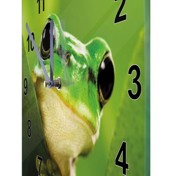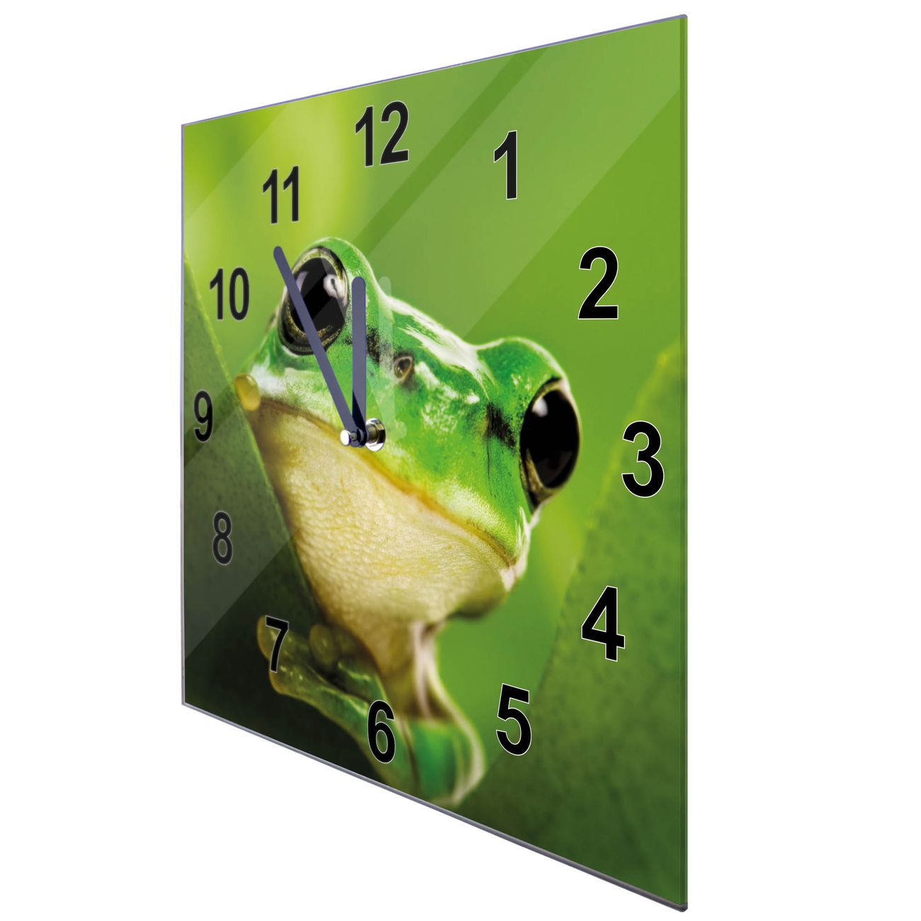 FUNKTION: Mit der banjado Wanduhr aus Glas mit dem Motiv Frosch behalten Sie die Zeit immer im Blick, stilsicher und zuverlässig erkennen Sie auf einen Blick was die Stunde geschlagen hat. DESIGN: Die schlichte Form der Uhr sowie das individuelle Motiv passen sich hervorragend jedem Wohnraumkonzept an, egal ob klassisch, nostalgisch oder modern. DETAILS: Die Glasuhr ist quadratisch, 30 x 30cm groß und verfügt über ein geräuscharmes Uhrwerk mit schwarzen Zeigern. Das Motiv Frosch befindet sich effektvoll hinter Glas. NUTZEN: Die banjado Glas Wanduhr verbindet Design und Funktion. Perfekt für Küche, Büro, Wohnzimmer oder Kinderzimmer, haben Sie die Zeit im Blick und eine schöne Wanddekoration. BANJADO: Wir fertigen alle Wanduhren auf Bestellung von Hand, erfüllen dabei auch gern Sonderwünsche. Wir wünschen viel Freude bei der Auswahl eines schönen Motivs. Herzlichst, banjado aus Sachsen