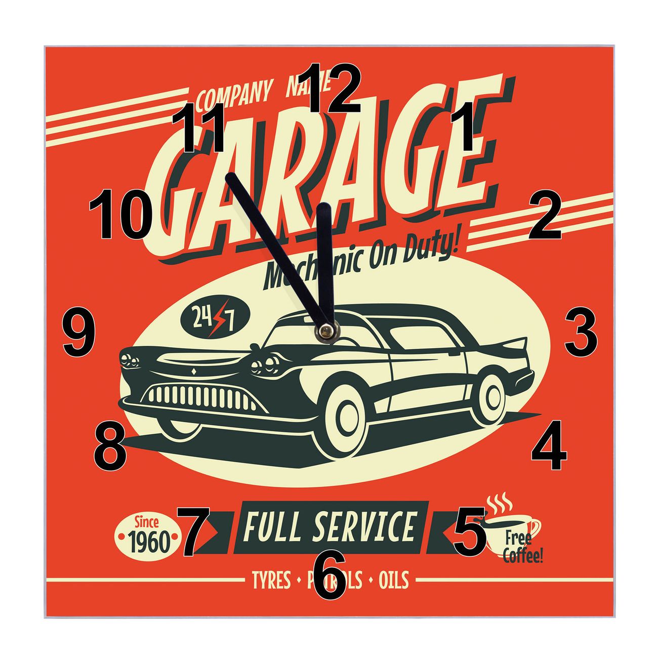 Glasuhr quadratisch Motiv Full Service