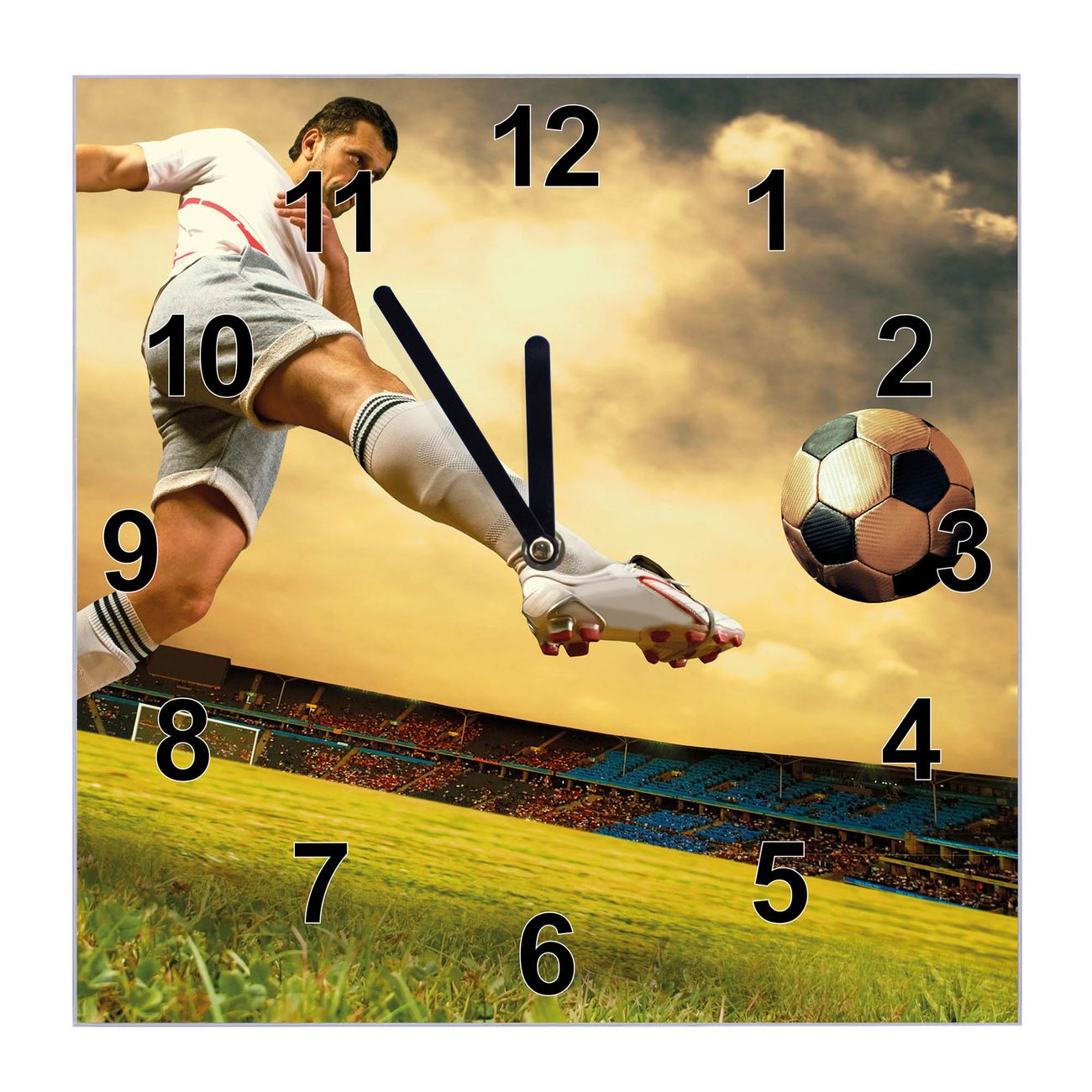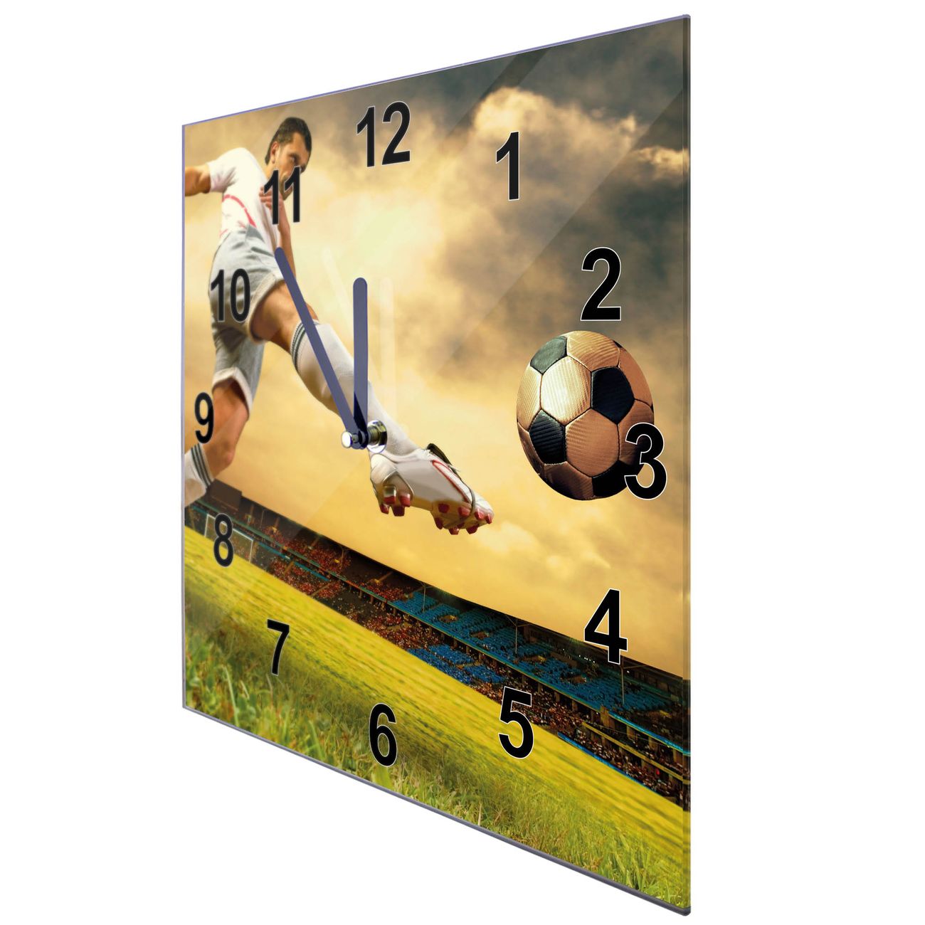 FUNKTION: Mit der banjado Wanduhr aus Glas mit dem Motiv Football behalten Sie die Zeit immer im Blick, stilsicher und zuverlässig erkennen Sie auf einen Blick was die Stunde geschlagen hat. DESIGN: Die schlichte Form der Uhr sowie das individuelle Motiv passen sich hervorragend jedem Wohnraumkonzept an, egal ob klassisch, nostalgisch oder modern. DETAILS: Die Glasuhr ist quadratisch, 30 x 30cm groß und verfügt über ein geräuscharmes Uhrwerk mit schwarzen Zeigern. Das Motiv Football befindet sich effektvoll hinter Glas. NUTZEN: Die banjado Glas Wanduhr verbindet Design und Funktion. Perfekt für Küche, Büro, Wohnzimmer oder Kinderzimmer, haben Sie die Zeit im Blick und eine schöne Wanddekoration. BANJADO: Wir fertigen alle Wanduhren auf Bestellung von Hand, erfüllen dabei auch gern Sonderwünsche. Wir wünschen viel Freude bei der Auswahl eines schönen Motivs. Herzlichst, banjado aus Sachsen