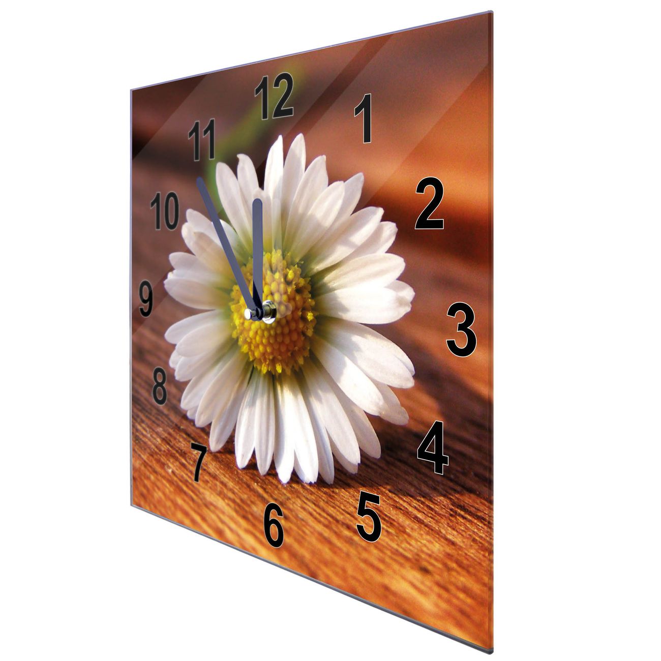 FUNKTION: Mit der banjado Wanduhr aus Glas mit dem Motiv Gänseblümchen behalten Sie die Zeit immer im Blick, stilsicher und zuverlässig erkennen Sie auf einen Blick was die Stunde geschlagen hat. DESIGN: Die schlichte Form der Uhr sowie das individuelle Motiv passen sich hervorragend jedem Wohnraumkonzept an, egal ob klassisch, nostalgisch oder modern. DETAILS: Die Glasuhr ist quadratisch, 30 x 30cm groß und verfügt über ein geräuscharmes Uhrwerk mit schwarzen Zeigern. Das Motiv Gänseblümchen befindet sich effektvoll hinter Glas. NUTZEN: Die banjado Glas Wanduhr verbindet Design und Funktion. Perfekt für Küche, Büro, Wohnzimmer oder Kinderzimmer, haben Sie die Zeit im Blick und eine schöne Wanddekoration. BANJADO: Wir fertigen alle Wanduhren auf Bestellung von Hand, erfüllen dabei auch gern Sonderwünsche. Wir wünschen viel Freude bei der Auswahl eines schönen Motivs. Herzlichst, banjado aus Sachsen