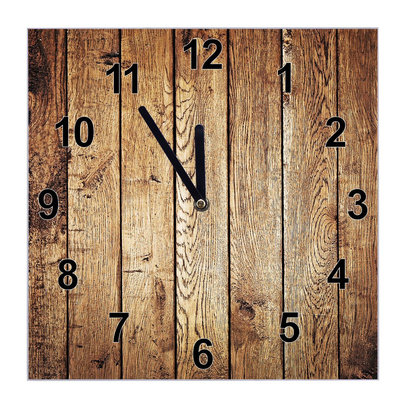 FUNKTION: Mit der banjado Wanduhr aus Glas mit dem Motiv Geöltes Holz behalten Sie die Zeit immer im Blick, stilsicher und zuverlässig erkennen Sie auf einen Blick was die Stunde geschlagen hat. DESIGN: Die schlichte Form der Uhr sowie das individuelle Motiv passen sich hervorragend jedem Wohnraumkonzept an, egal ob klassisch, nostalgisch oder modern. DETAILS: Die Glasuhr ist quadratisch, 30 x 30cm groß und verfügt über ein geräuscharmes Uhrwerk mit schwarzen Zeigern. Das Motiv Geöltes Holz befindet sich effektvoll hinter Glas. NUTZEN: Die banjado Glas Wanduhr verbindet Design und Funktion. Perfekt für Küche, Büro, Wohnzimmer oder Kinderzimmer, haben Sie die Zeit im Blick und eine schöne Wanddekoration. BANJADO: Wir fertigen alle Wanduhren auf Bestellung von Hand, erfüllen dabei auch gern Sonderwünsche. Wir wünschen viel Freude bei der Auswahl eines schönen Motivs. Herzlichst, banjado aus Sachsen