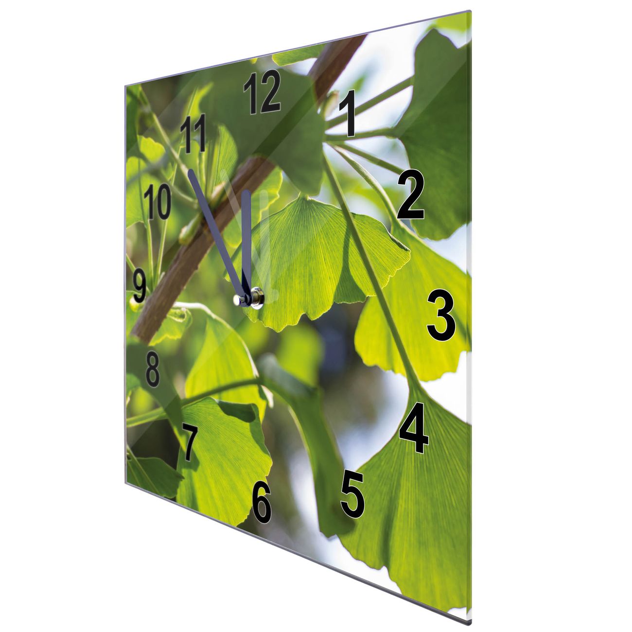 Glasuhr quadratisch Motiv Gingko