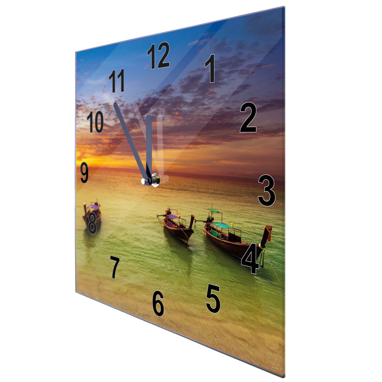 FUNKTION: Mit der banjado Wanduhr aus Glas mit dem Motiv Golf Von Thailand behalten Sie die Zeit immer im Blick, stilsicher und zuverlässig erkennen Sie auf einen Blick was die Stunde geschlagen hat. DESIGN: Die schlichte Form der Uhr sowie das individuelle Motiv passen sich hervorragend jedem Wohnraumkonzept an, egal ob klassisch, nostalgisch oder modern. DETAILS: Die Glasuhr ist quadratisch, 30 x 30cm groß und verfügt über ein geräuscharmes Uhrwerk mit schwarzen Zeigern. Das Motiv Golf Von Thailand befindet sich effektvoll hinter Glas. NUTZEN: Die banjado Glas Wanduhr verbindet Design und Funktion. Perfekt für Küche, Büro, Wohnzimmer oder Kinderzimmer, haben Sie die Zeit im Blick und eine schöne Wanddekoration. BANJADO: Wir fertigen alle Wanduhren auf Bestellung von Hand, erfüllen dabei auch gern Sonderwünsche. Wir wünschen viel Freude bei der Auswahl eines schönen Motivs. Herzlichst, banjado aus Sachsen